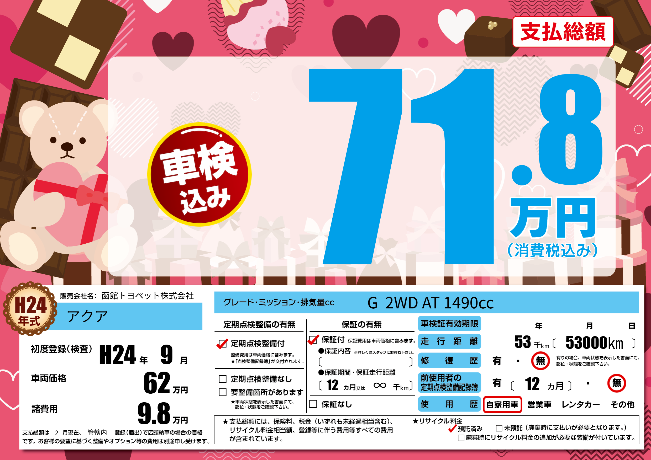 | 定期点検整備 | 定期点検整備あり | ||