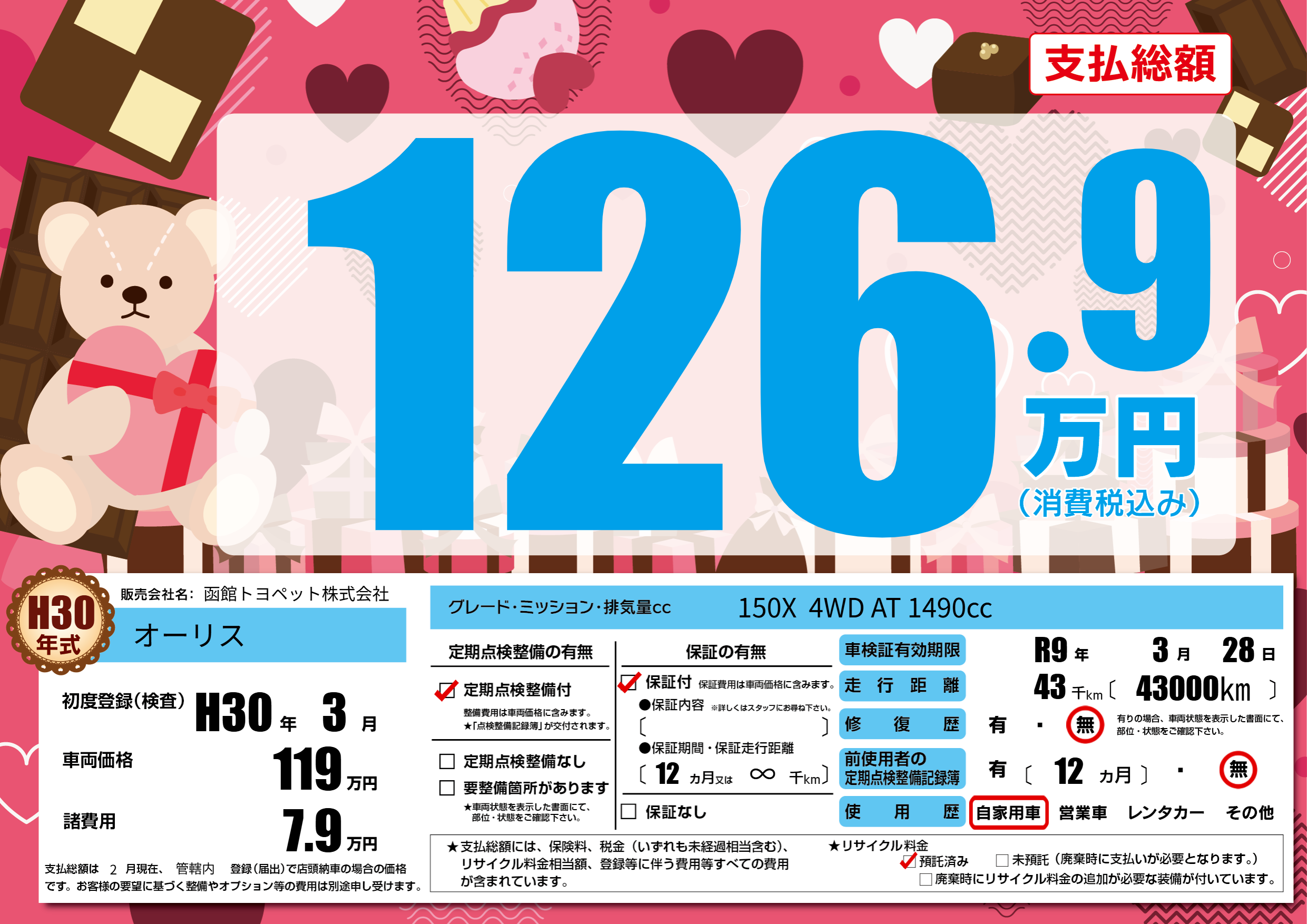 | 初年度登録 | H30年3月 | ||