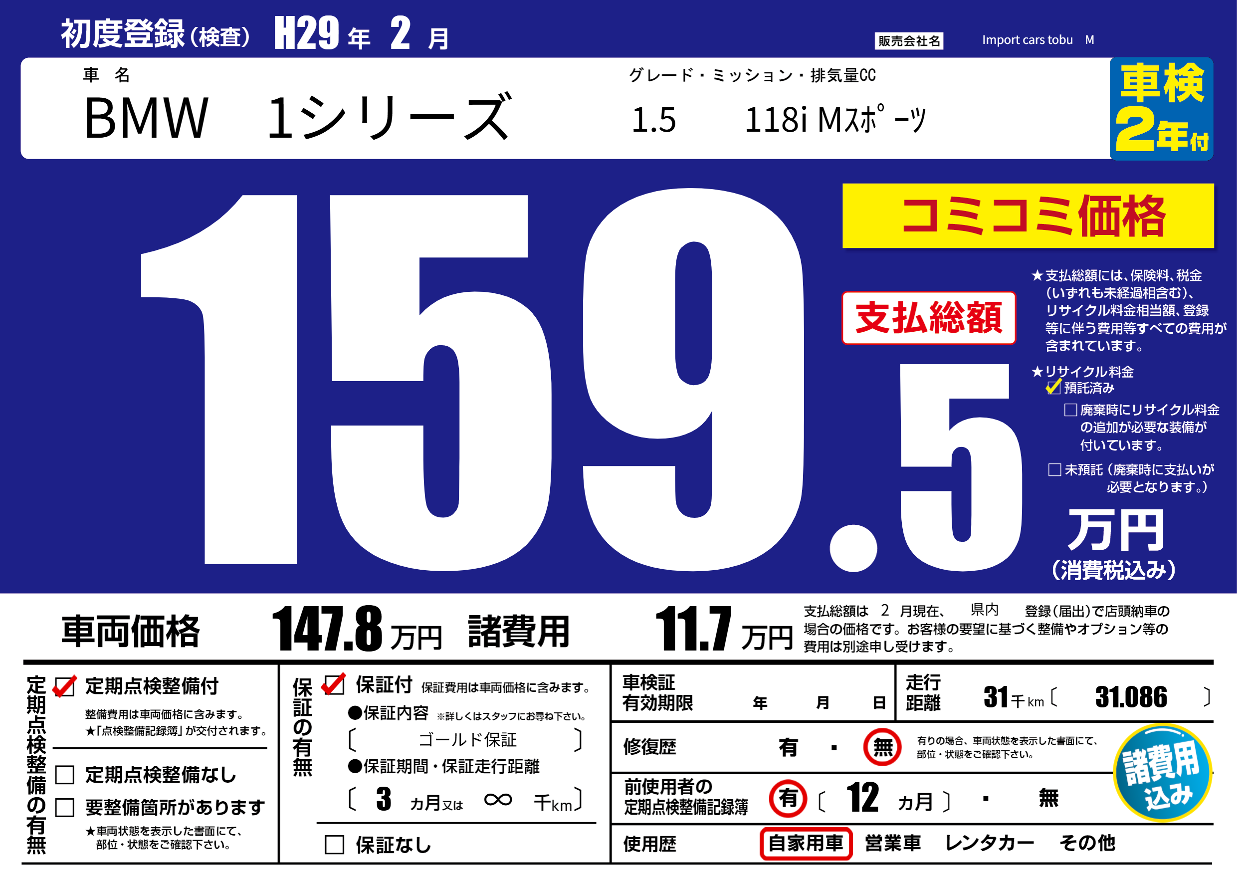 | 定期点検整備 | 定期点検整備あり | ||