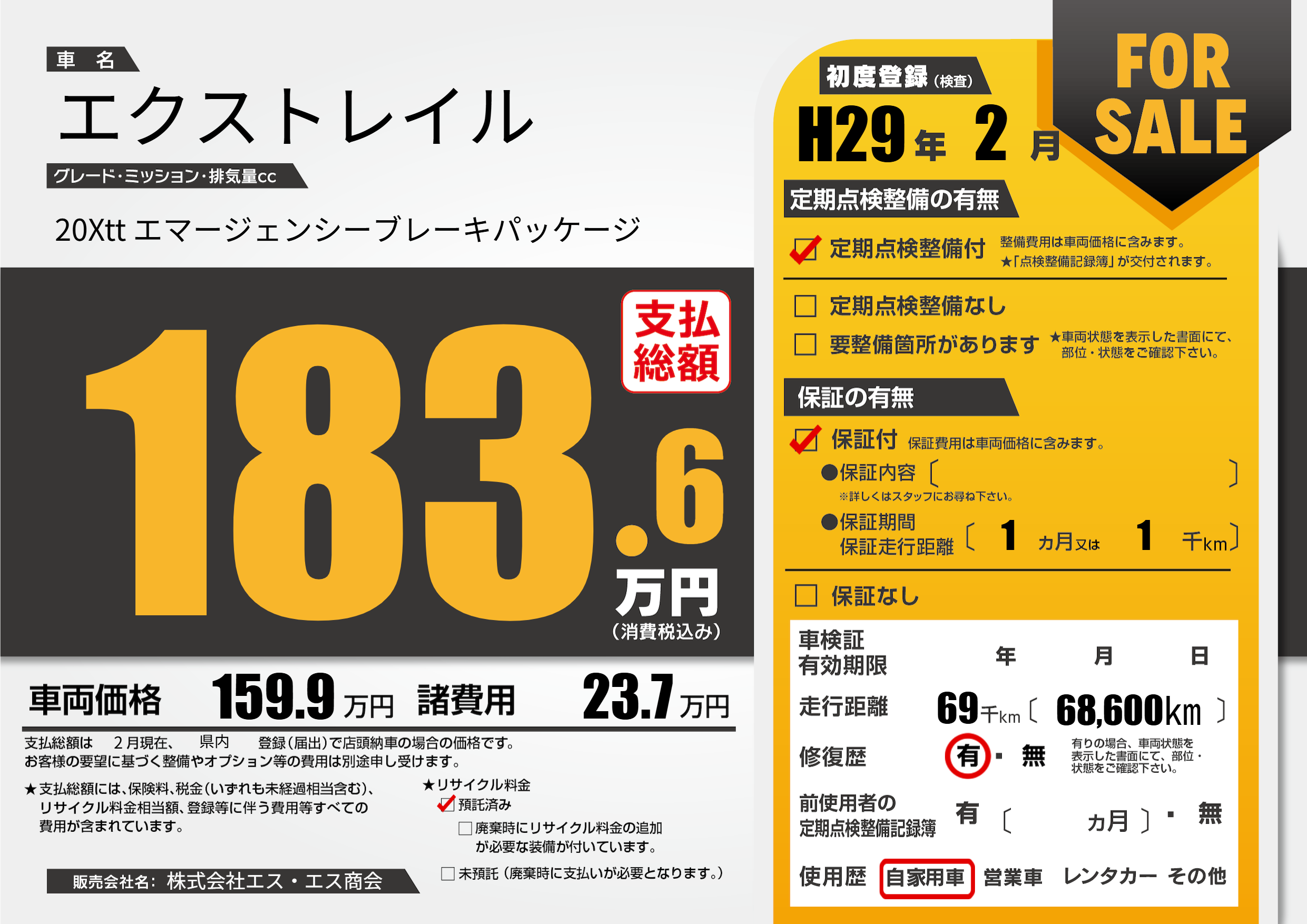 | 定期点検整備 | 定期点検整備あり | ||
