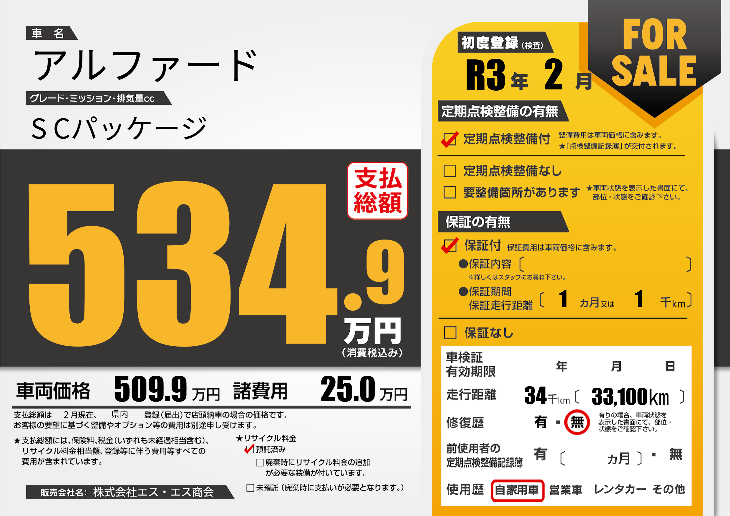 | 初年度登録 | R3年2月 | ||