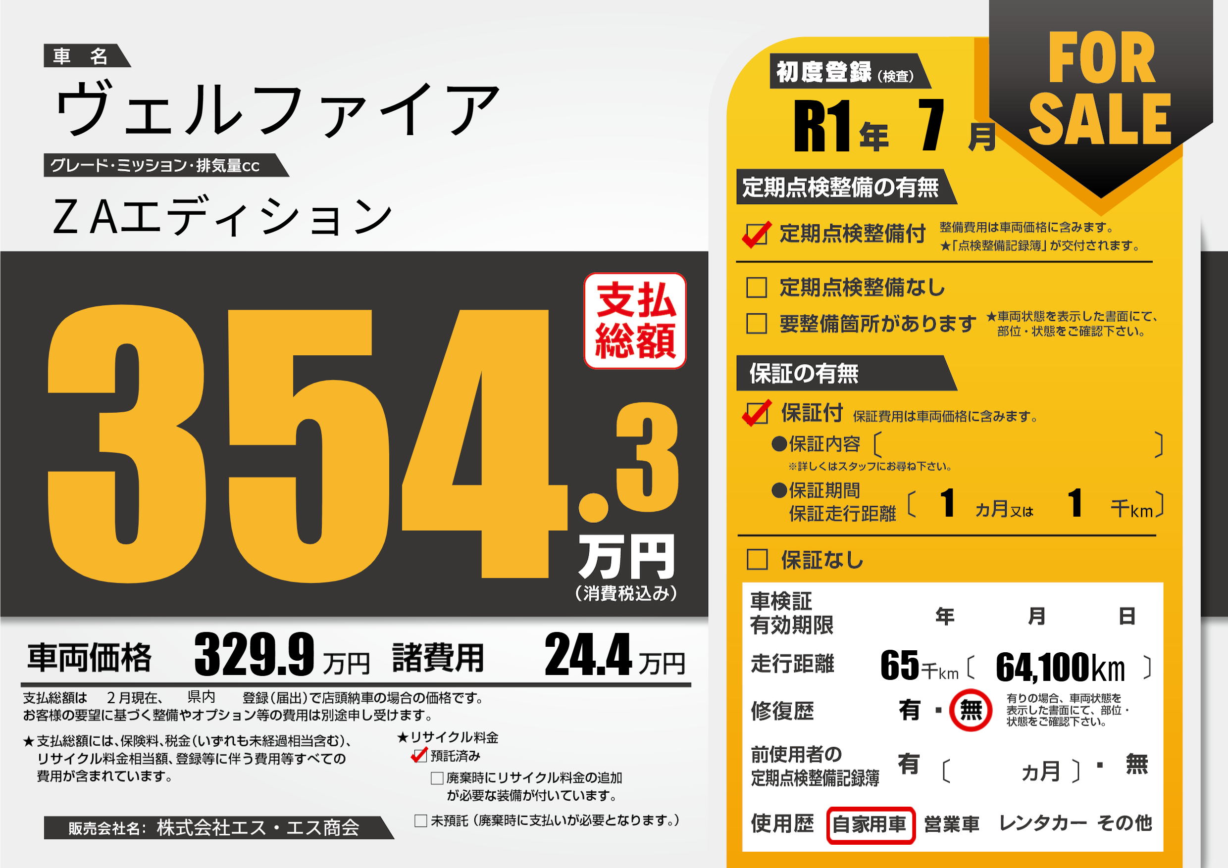 | 走行キロ | 6.5万km | 初年度登録 | R1年7月 |