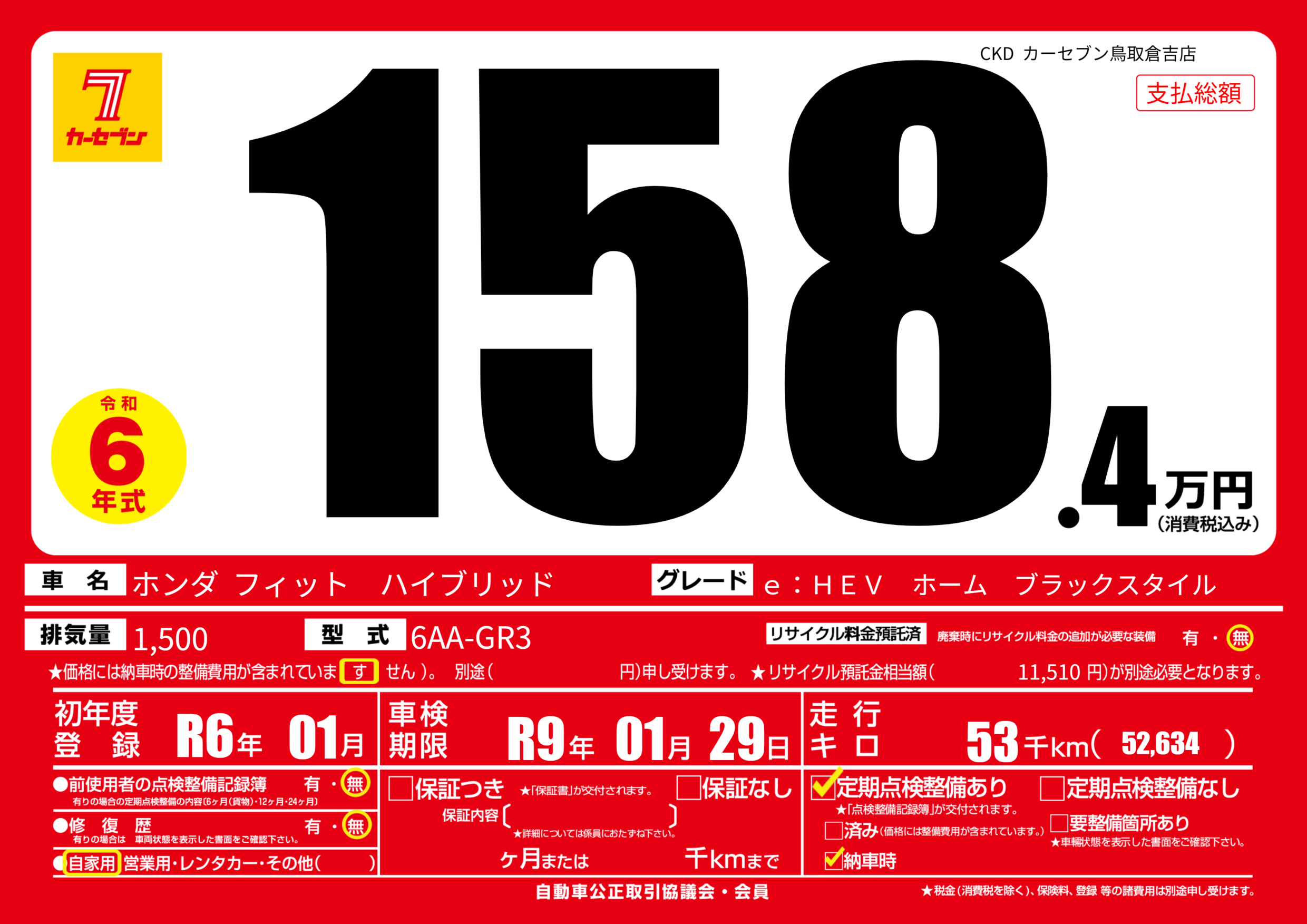 | 走行キロ | 5.3万km | 初年度登録 | R6年01月 |
