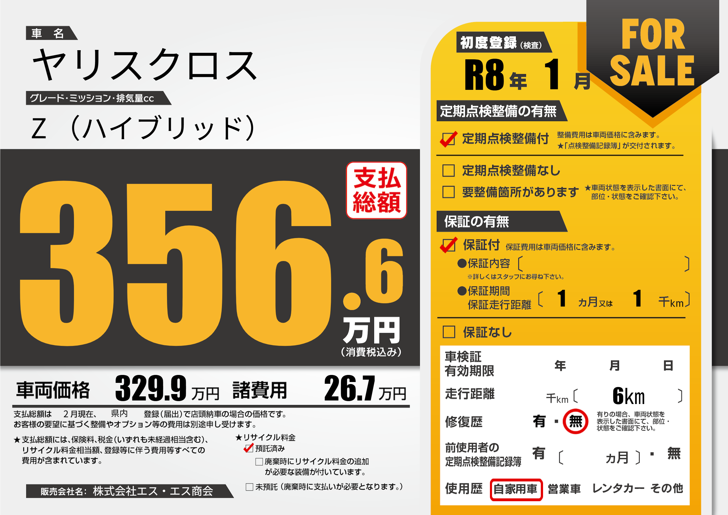 | 初年度登録 | R8年1月 | ||