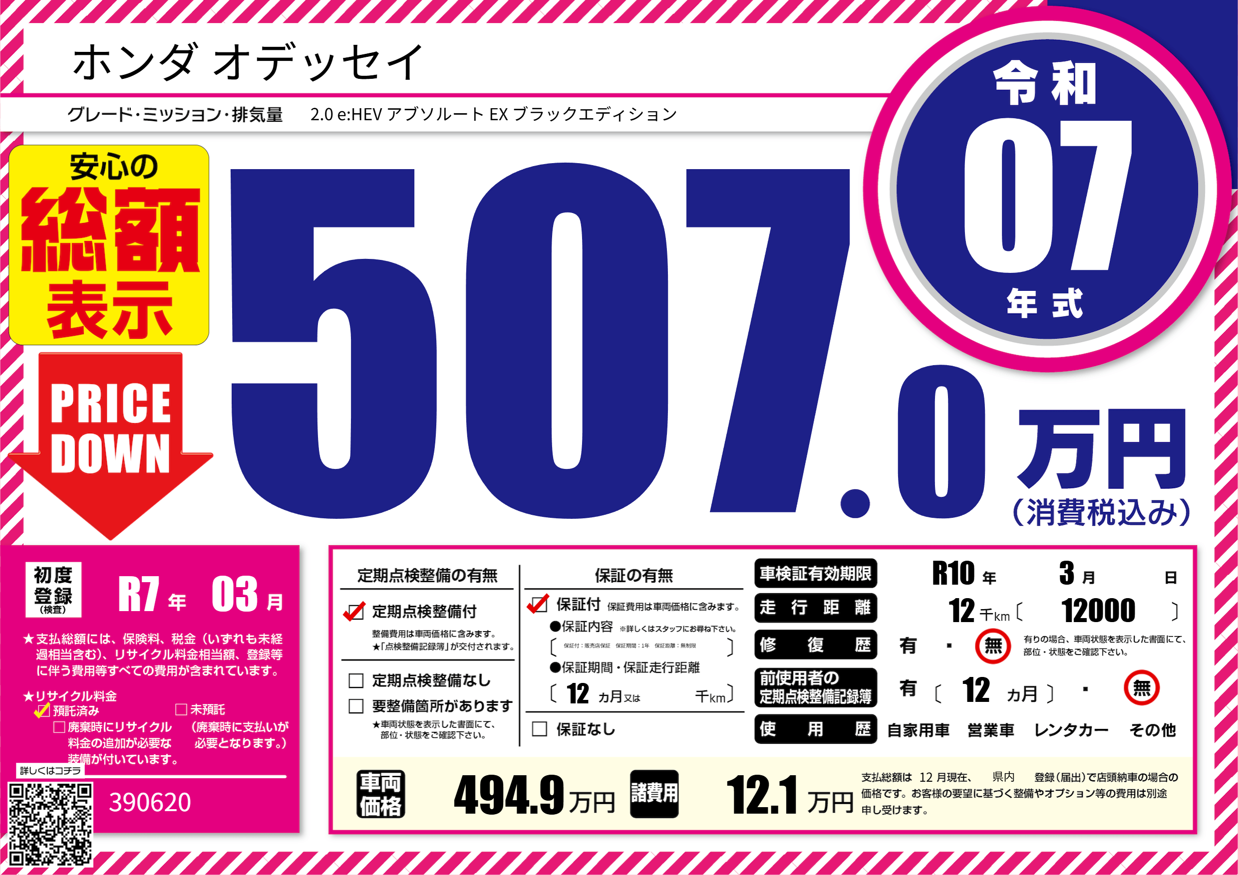 | 走行キロ | 1.2万km | 初年度登録 | R7年03月 |