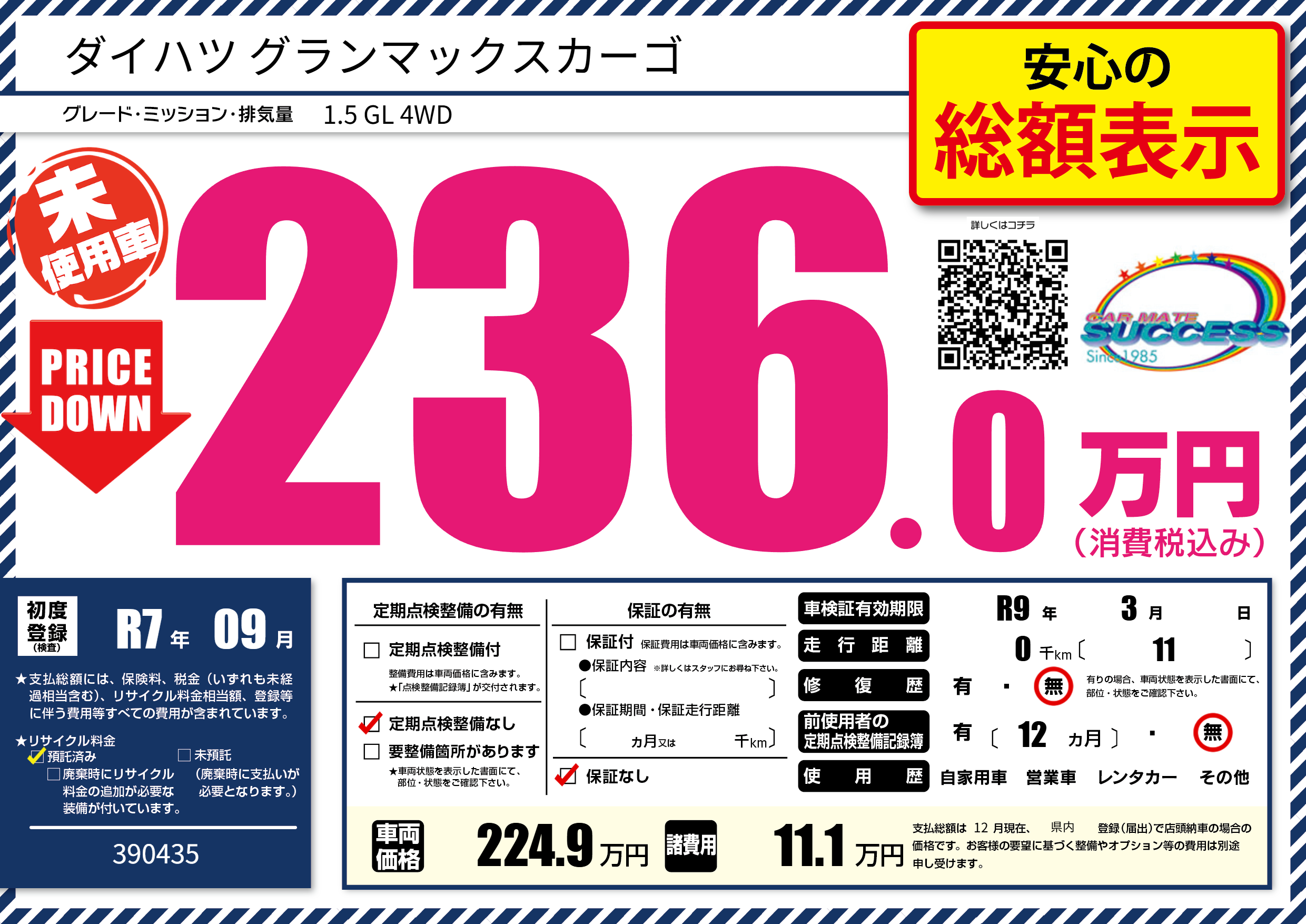 | 車検制限 | R9年 3月 - 日 | ||