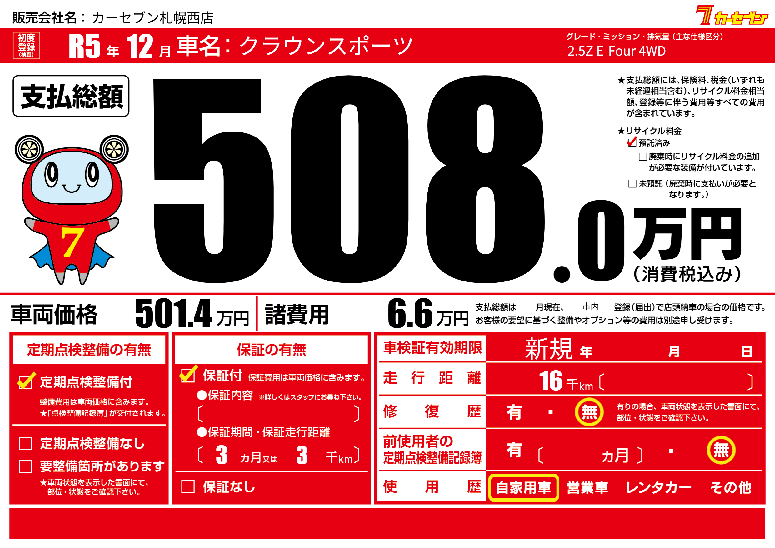 | 定期点検整備 | 定期点検整備あり | ||