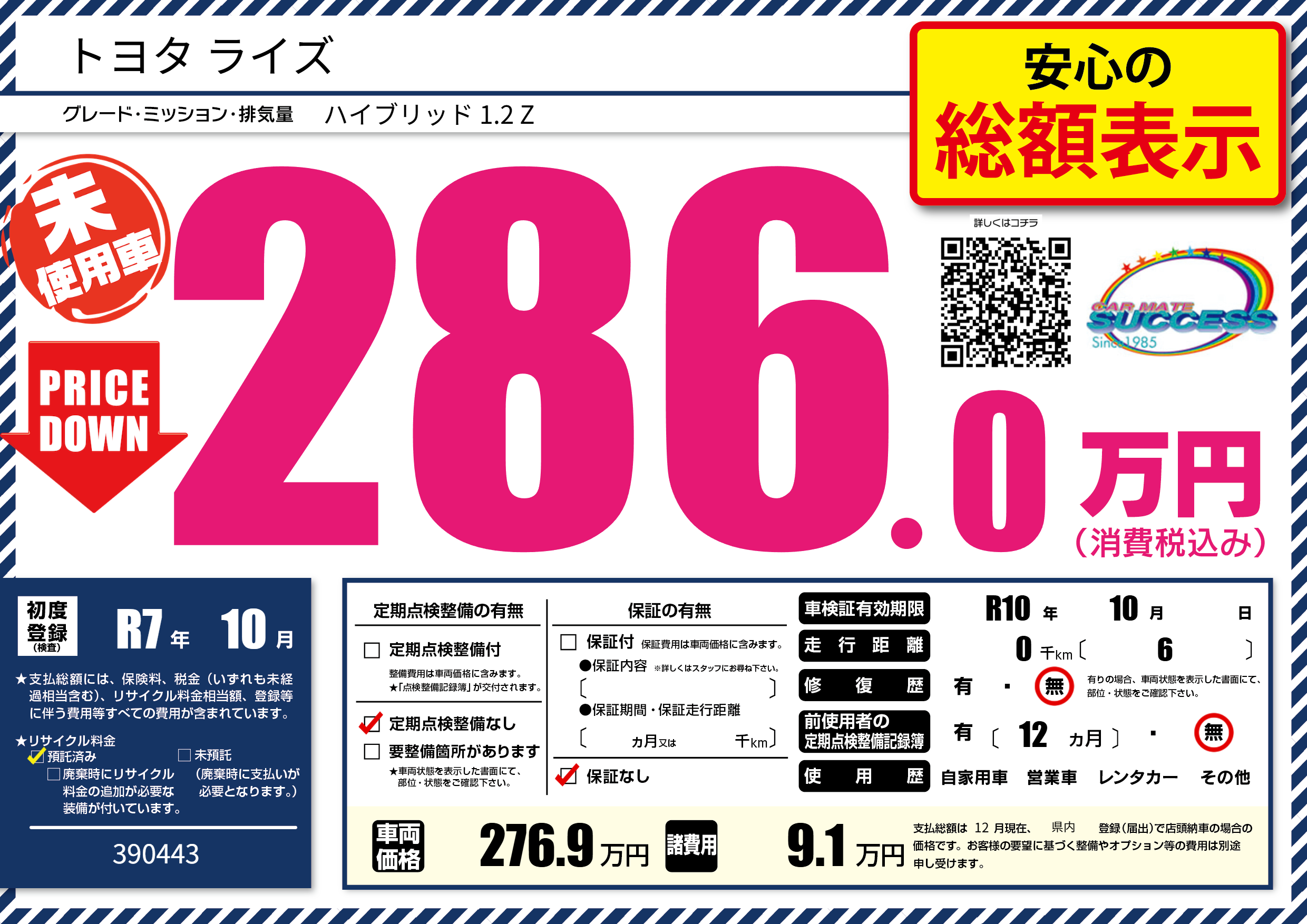| 定期点検整備 | 定期点検整備なし | ||
