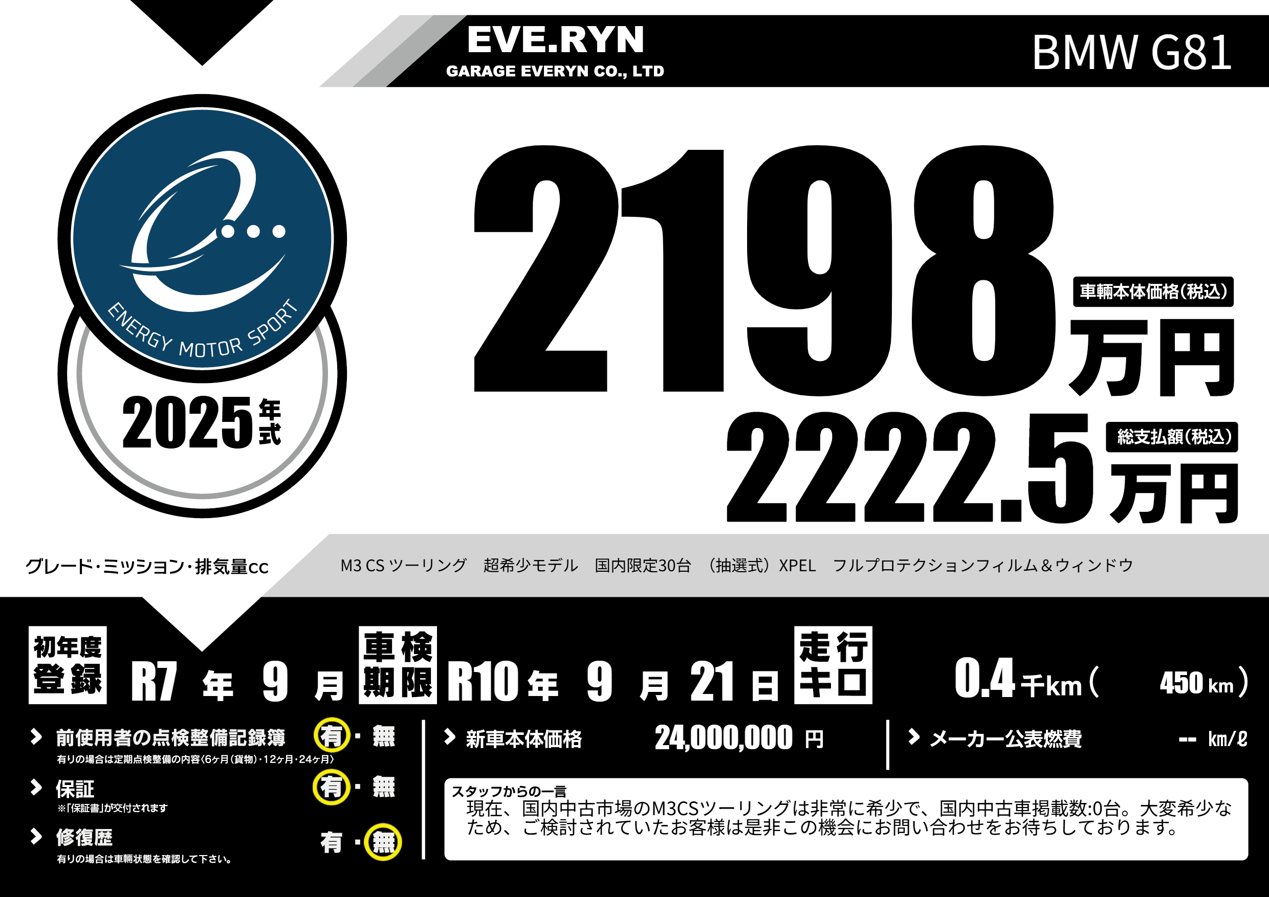 M3 CS ツーリング 超希少モデル 国内限定30台 (抽選式)XPEL フルプロテクションフィルム&ウィンドウ |