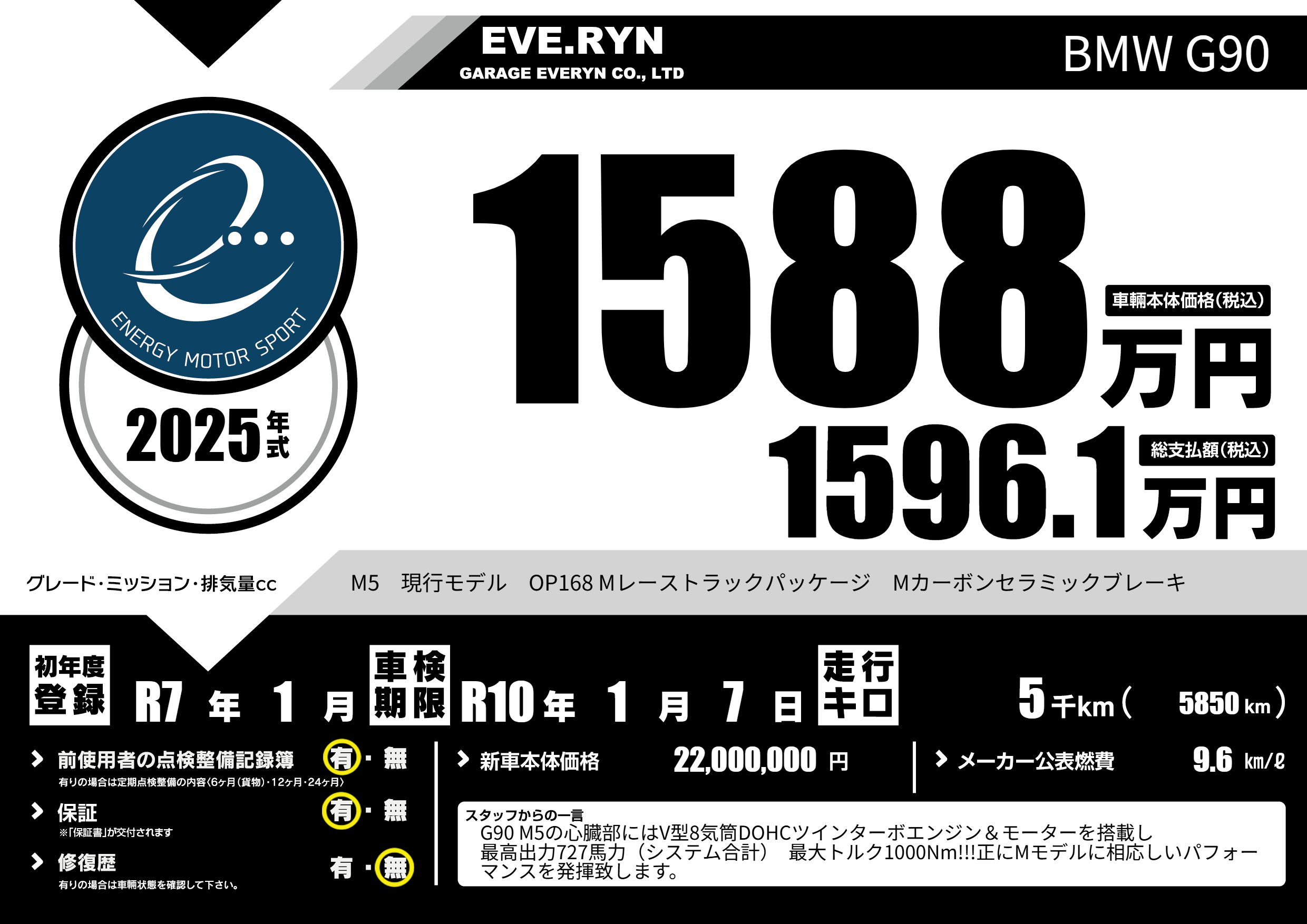 | 車名 | BMW G90 | グレード ミッション 排気量 |