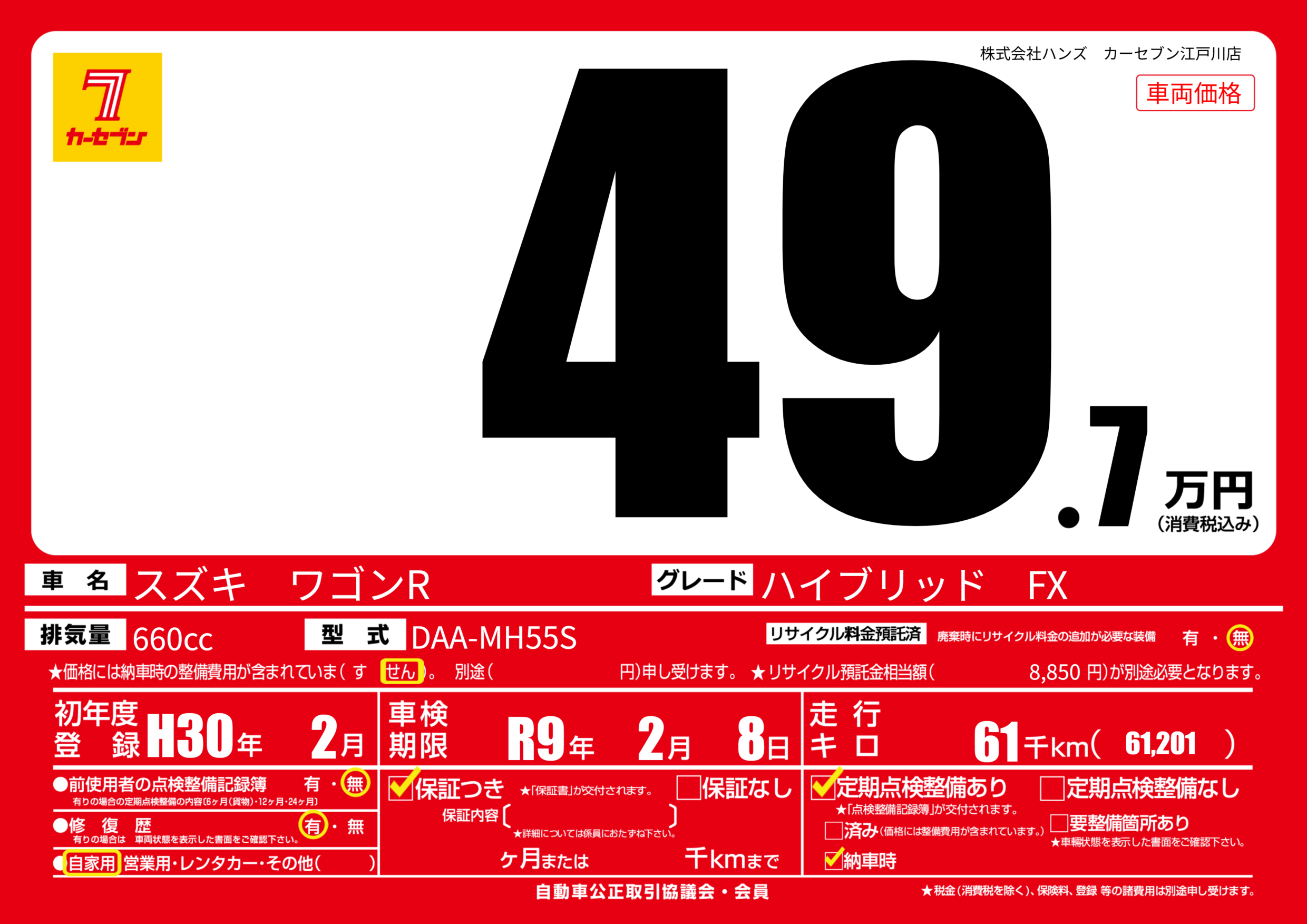 | 車検制限 | R9年 2月 8日 | ||