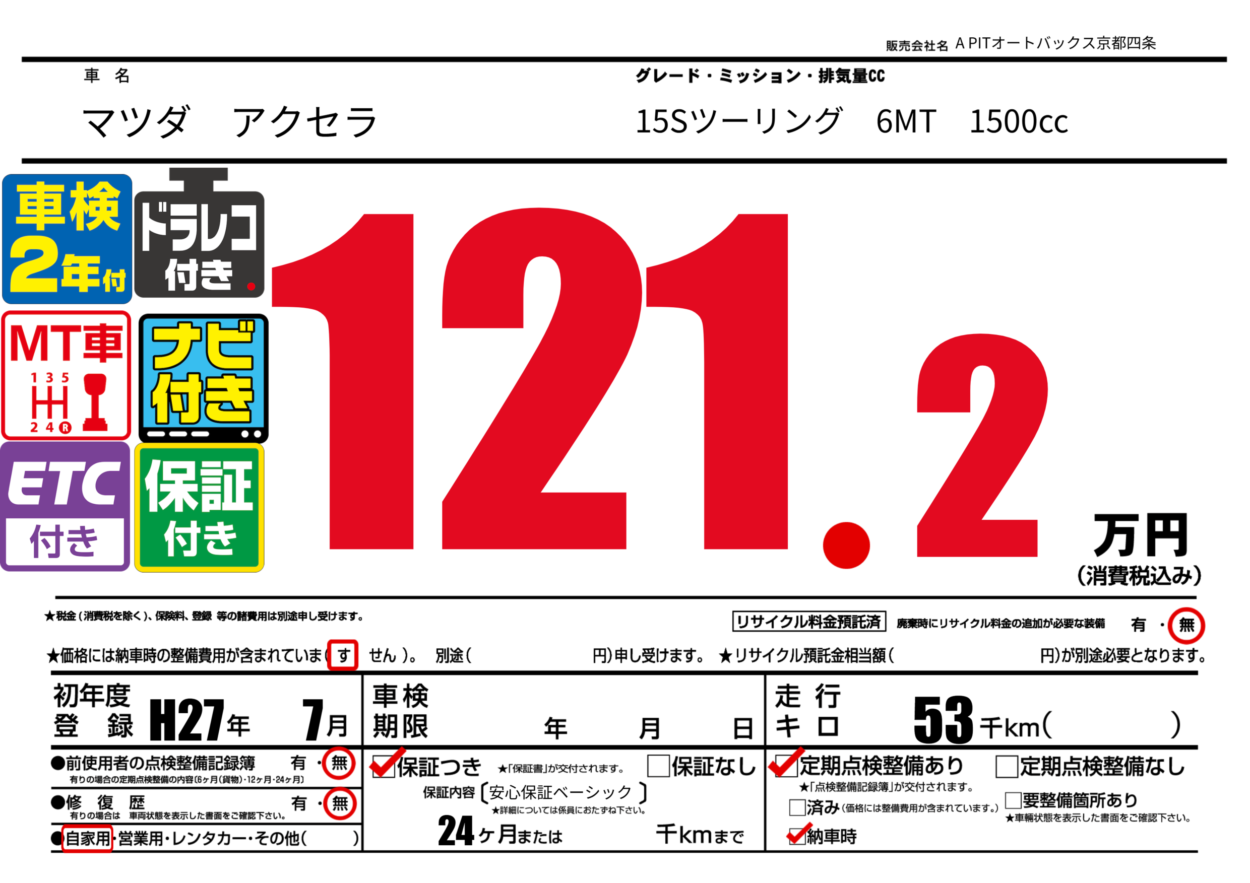 | 初年度登録 | H27年7月 | ||
