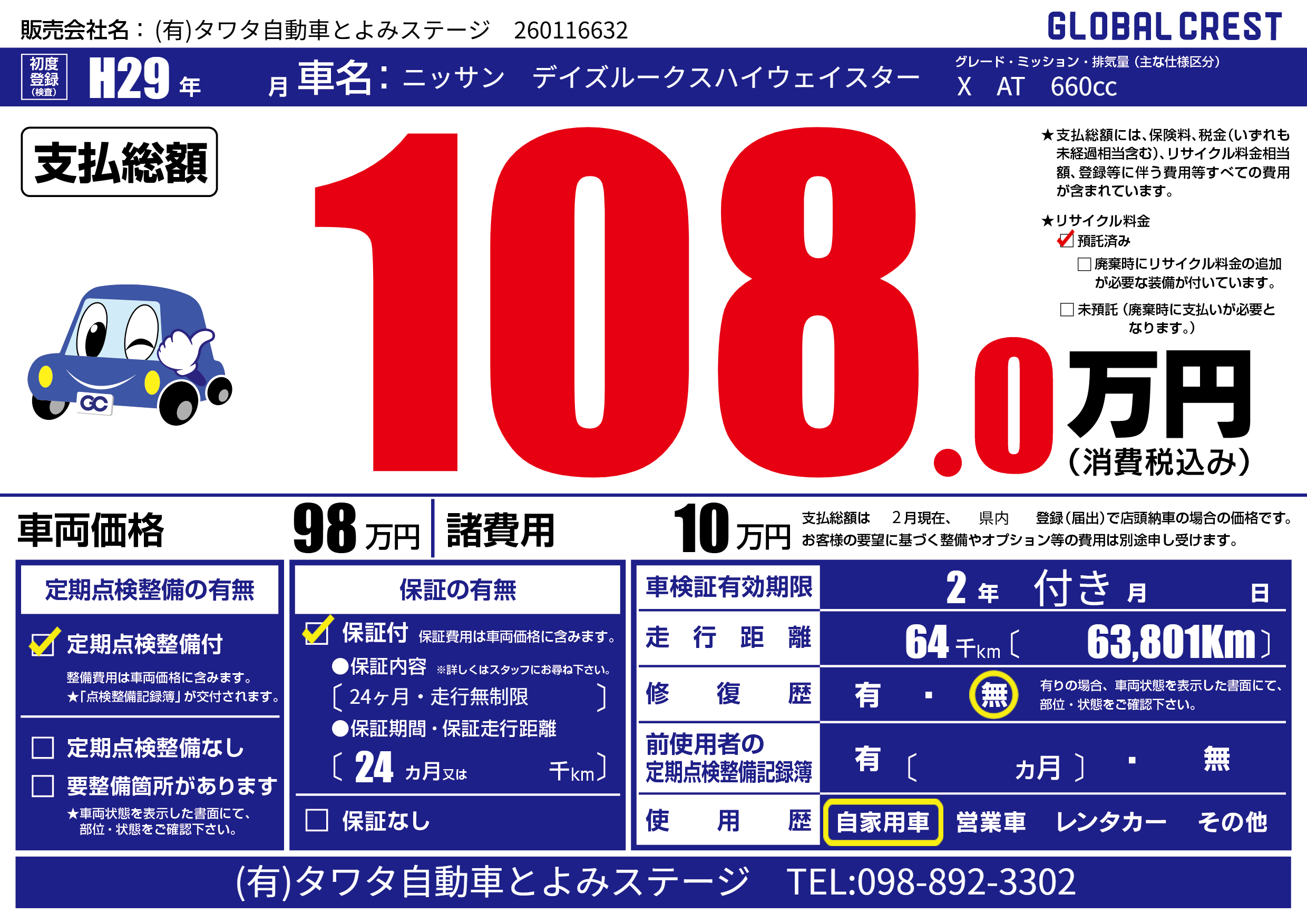 | 定期点検整備 | 定期点検整備あり | ||
