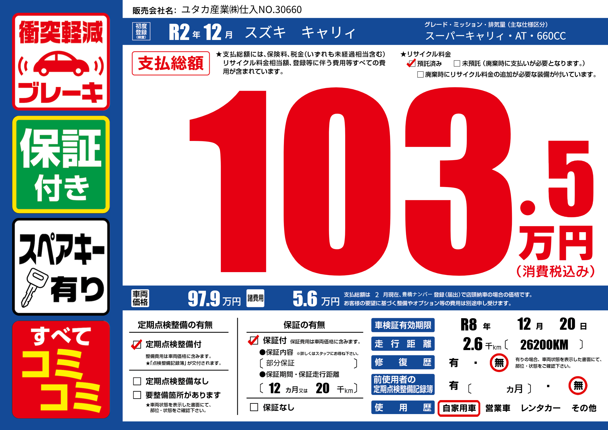 なし | 車検制限 | R8年12月20月 |