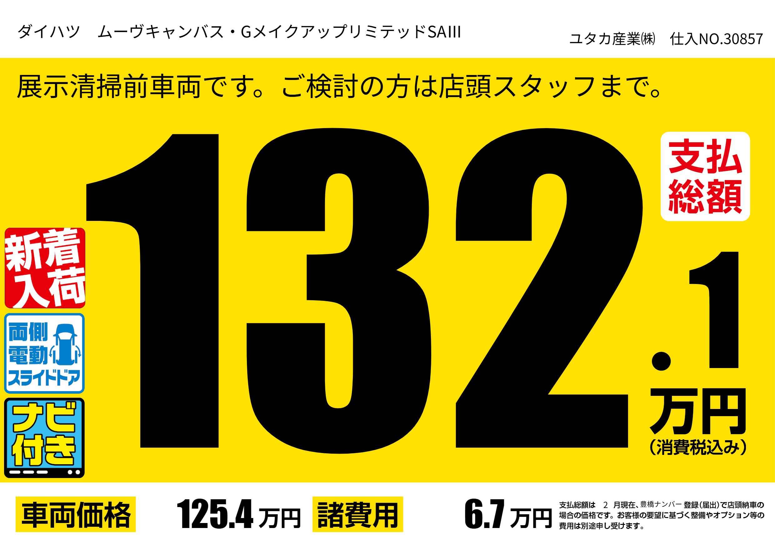 展示清掃前車両です。ご検討の方は店頭スタッフまで。 |
