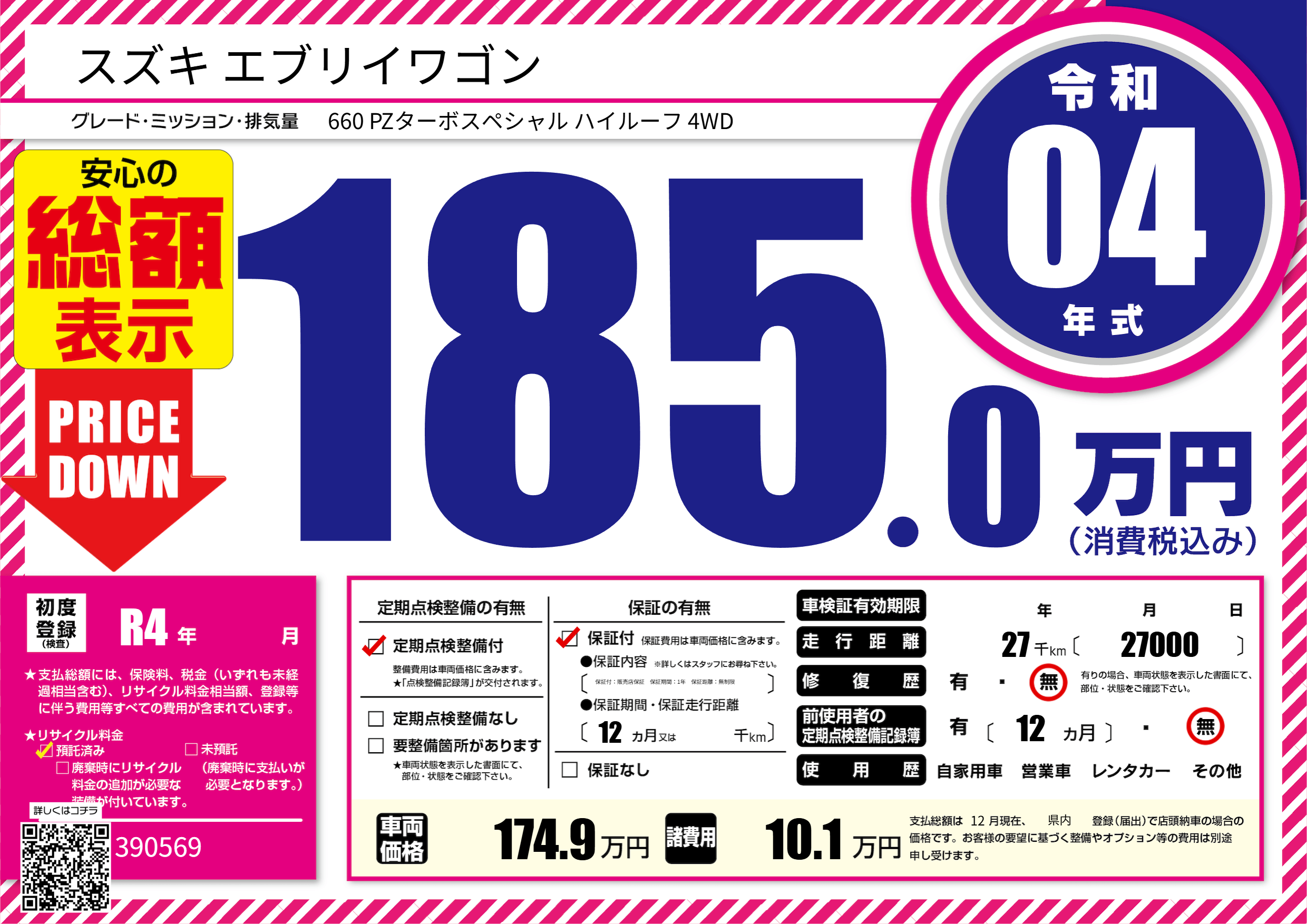 | 車名 | スズキ エブリイワゴン | グレード ミッション 排気量 |