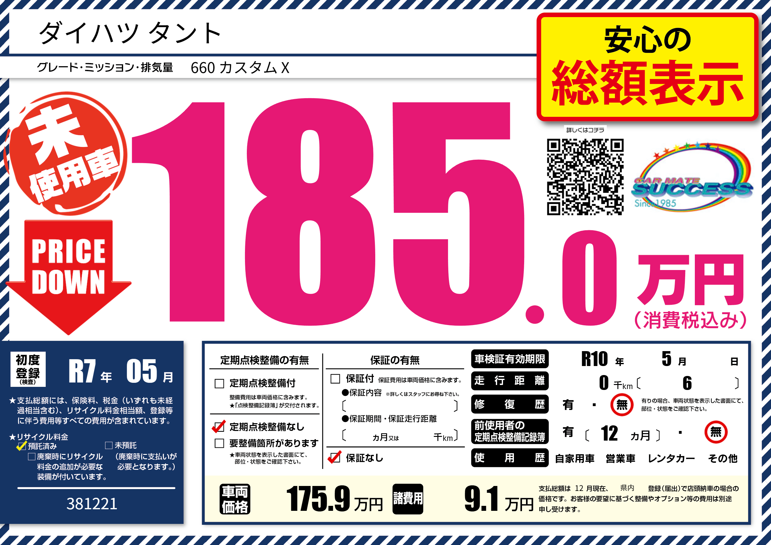 | 走行キロ | - | 初年度登録 | R7年05月 |