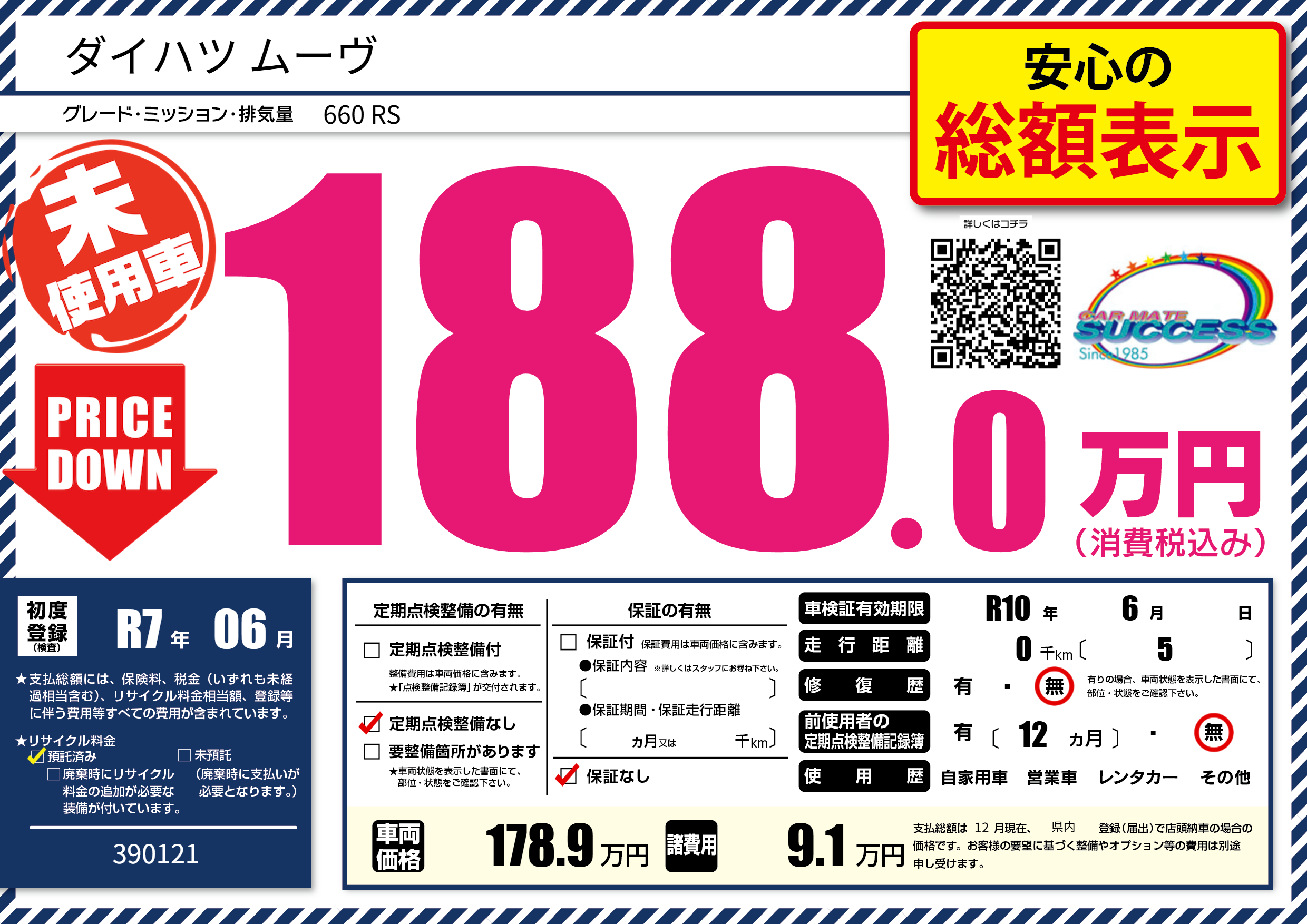 | 走行キロ | - | 初年度登録 | R7年06月 |