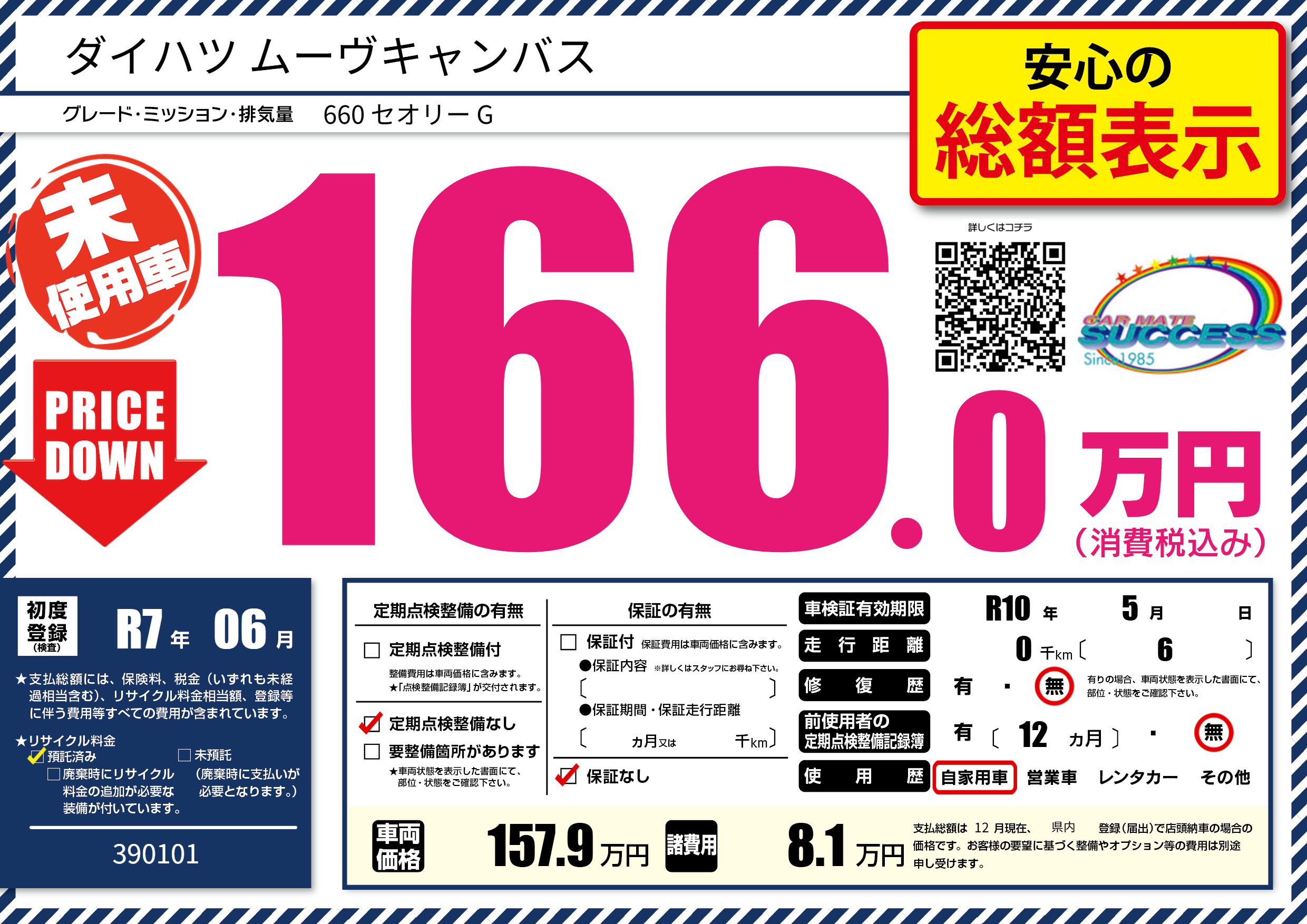 | 走行キロ | - | 初年度登録 | R7年06月 |