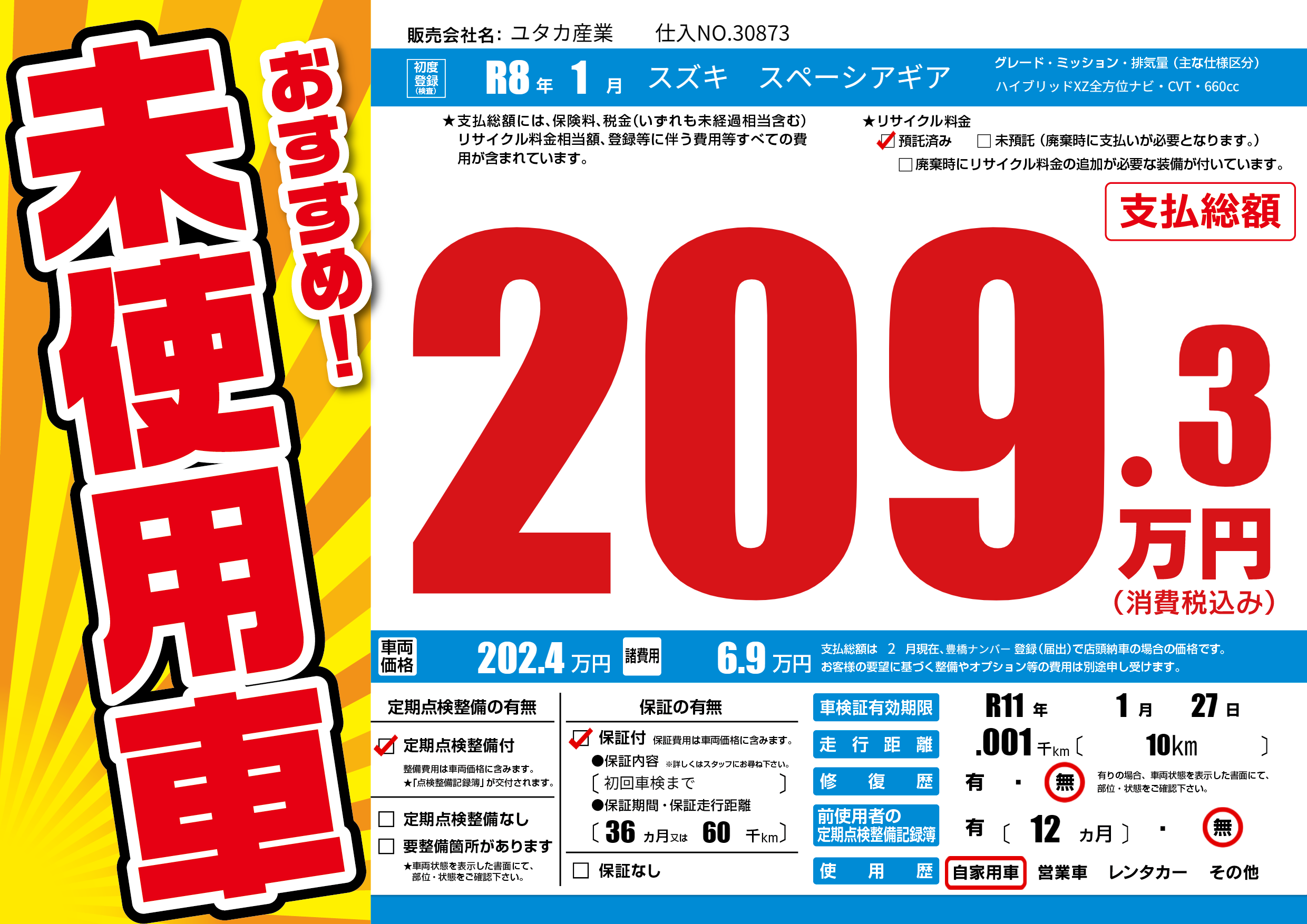 | 走行キロ | - | 初年度登録 | R8年1月 |