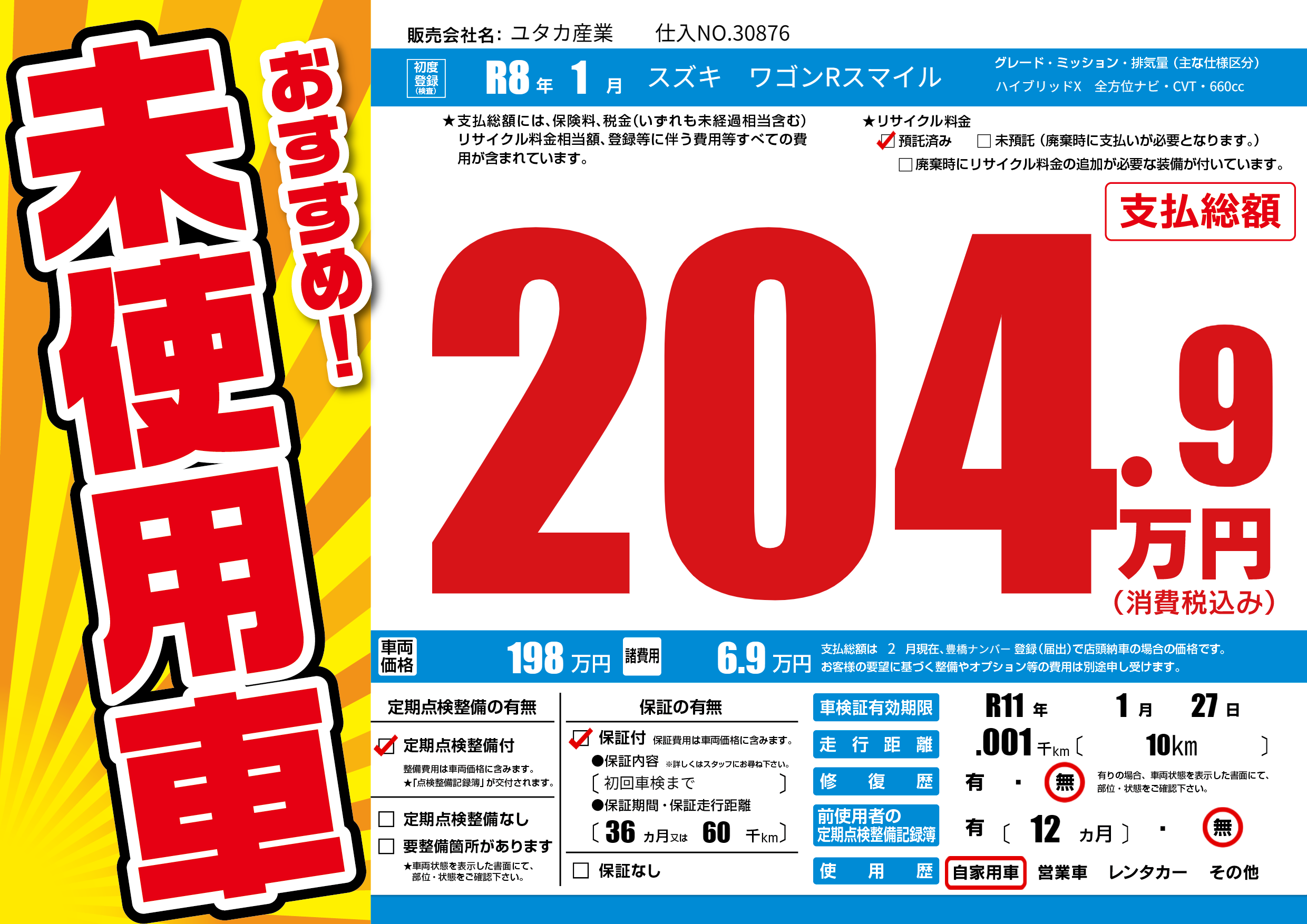 | 走行キロ | - | 初年度登録 | R8年1月 |