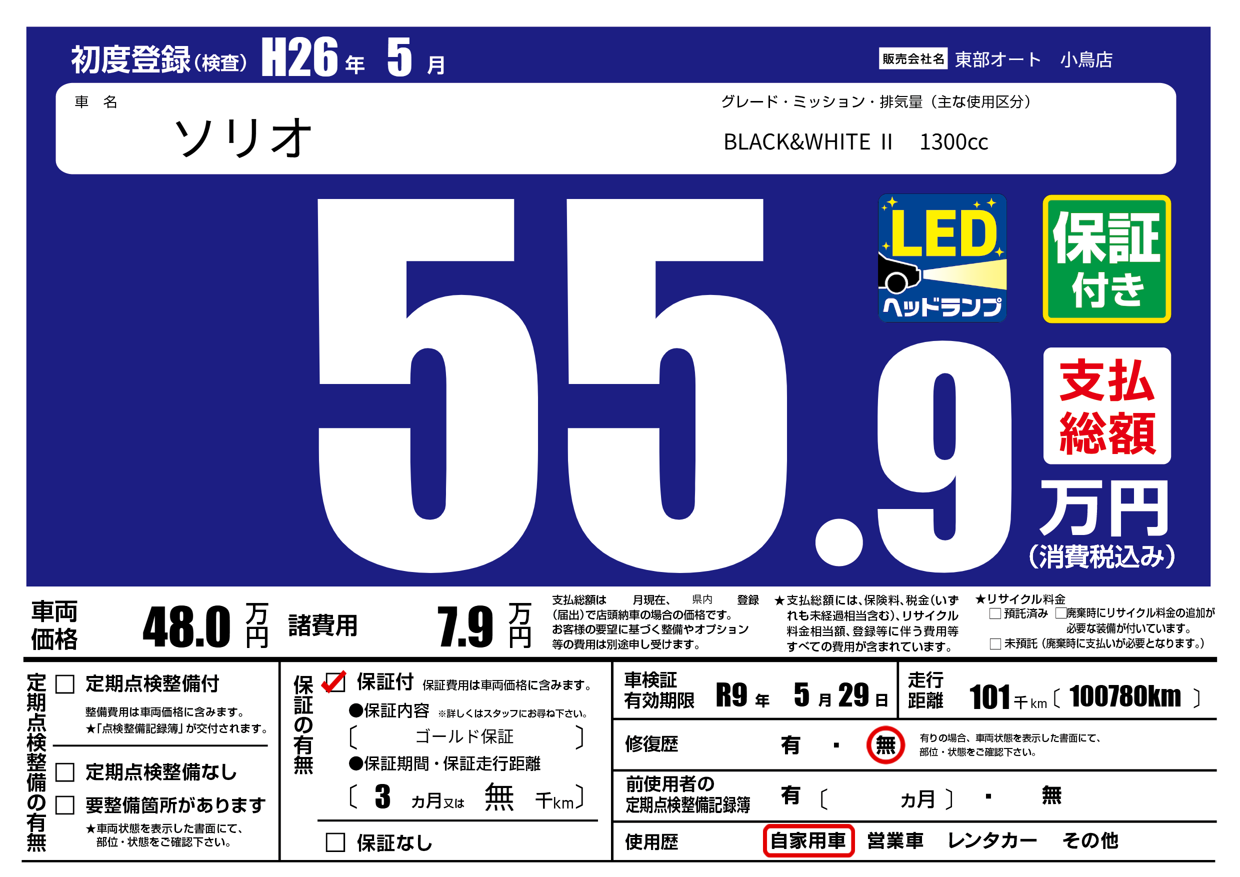 保証付き 保証内容( ゴールド保証) 3ヶ月または(無)千kmまで |