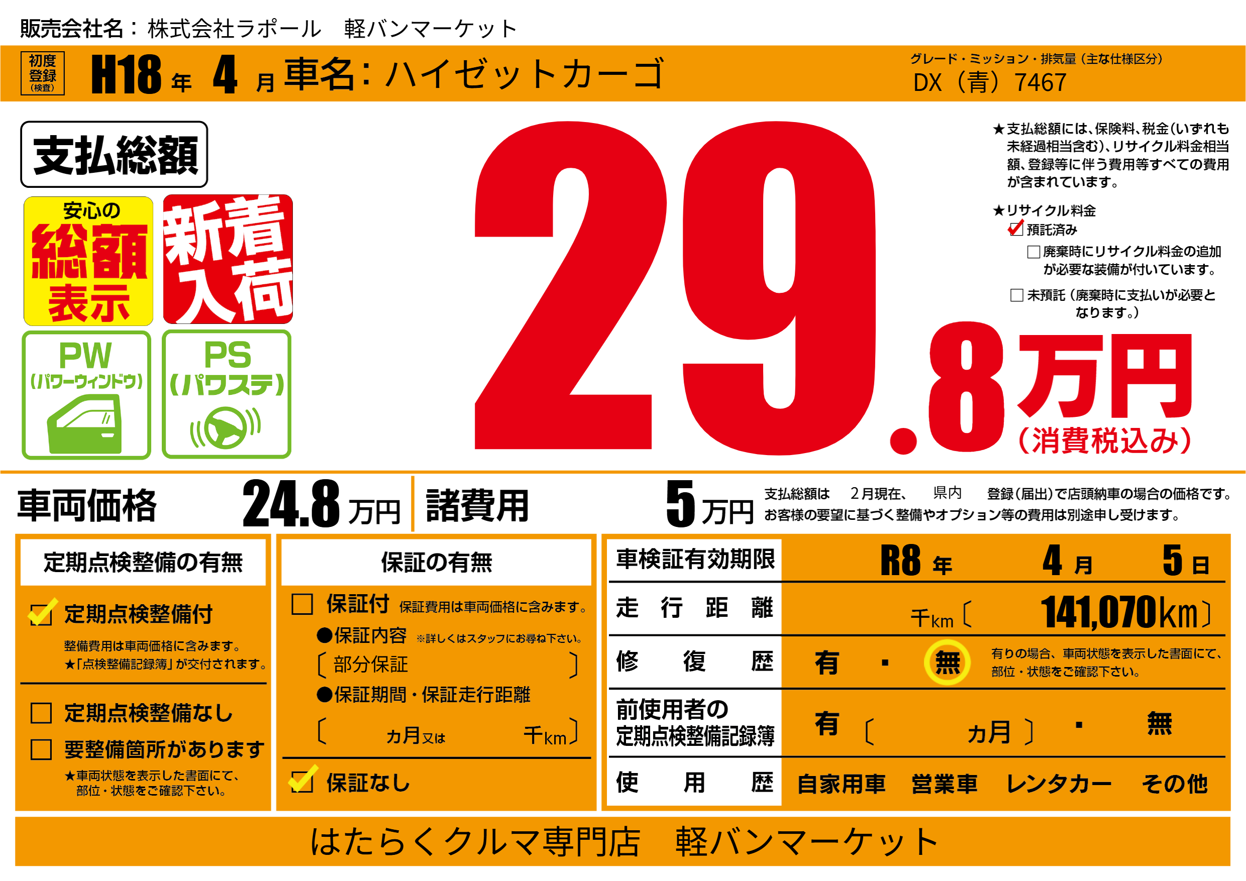 なし | 車検制限 | R8年4月5月 |