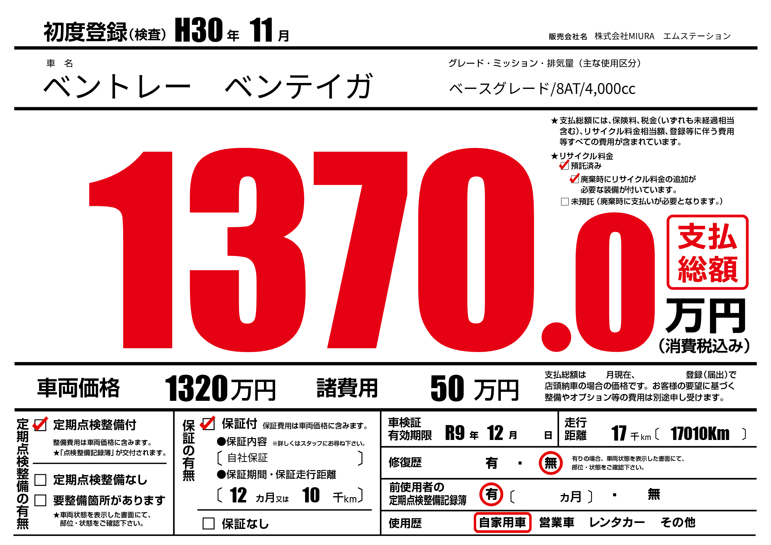 | 定期点検整備 | 定期点検整備あり | ||