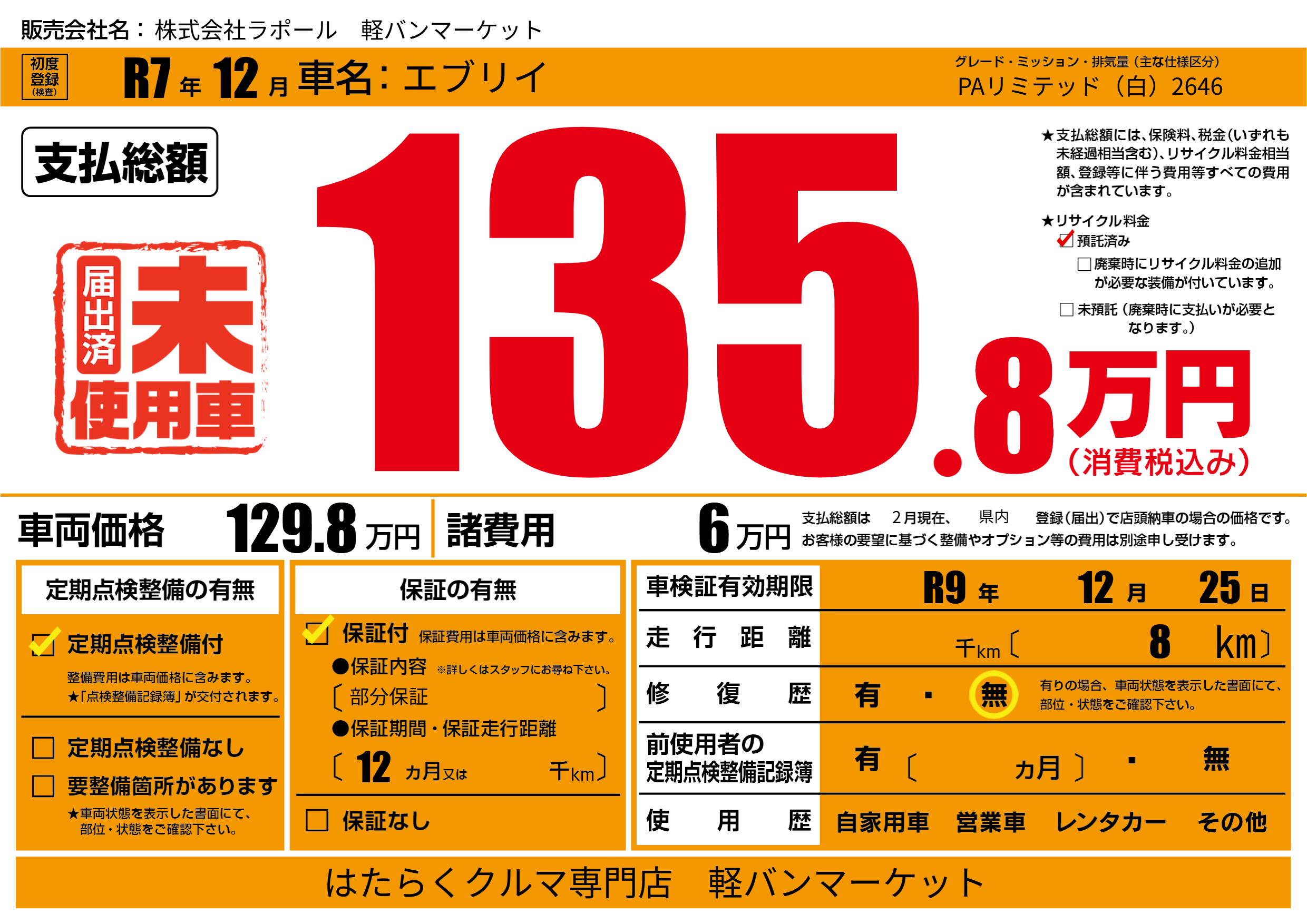 | 初年度登録 | R7年12月 | ||