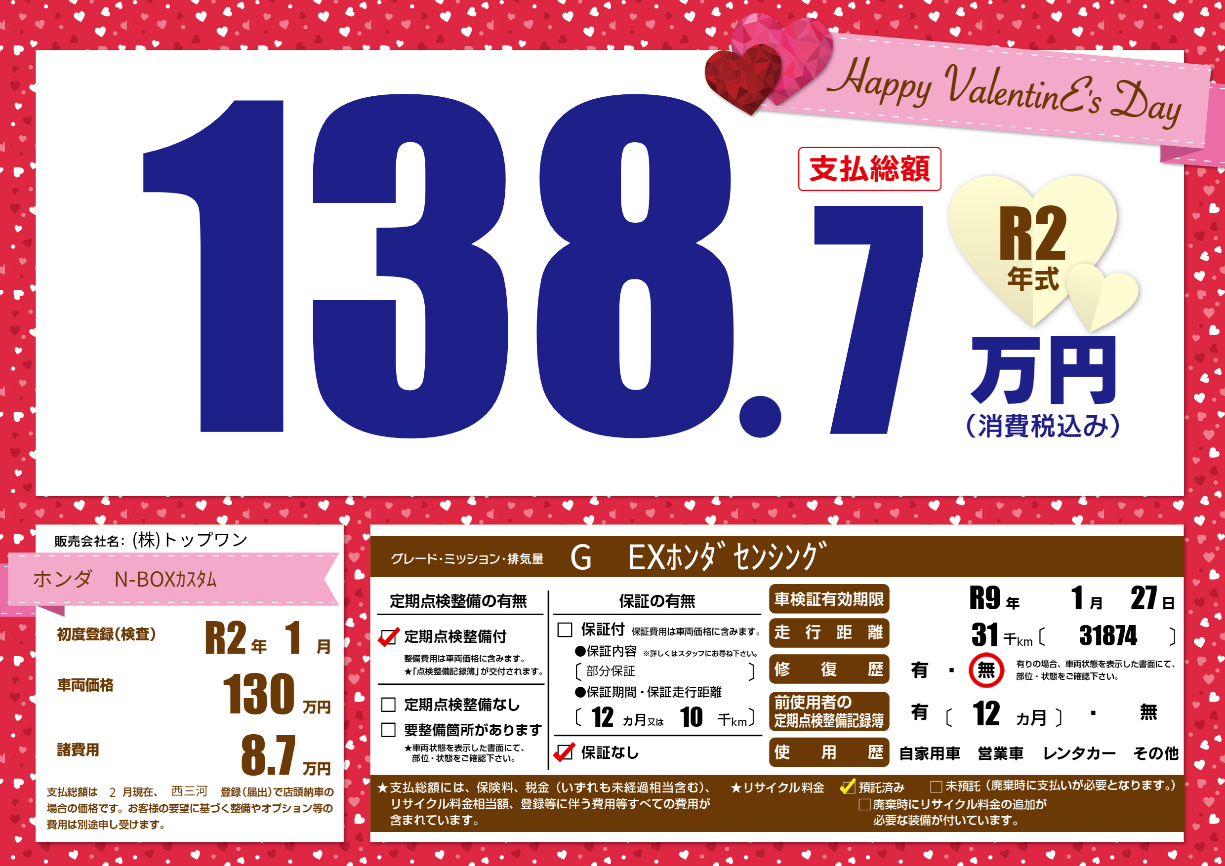 | 走行キロ | 3.1万km | 初年度登録 | R2年1月 |