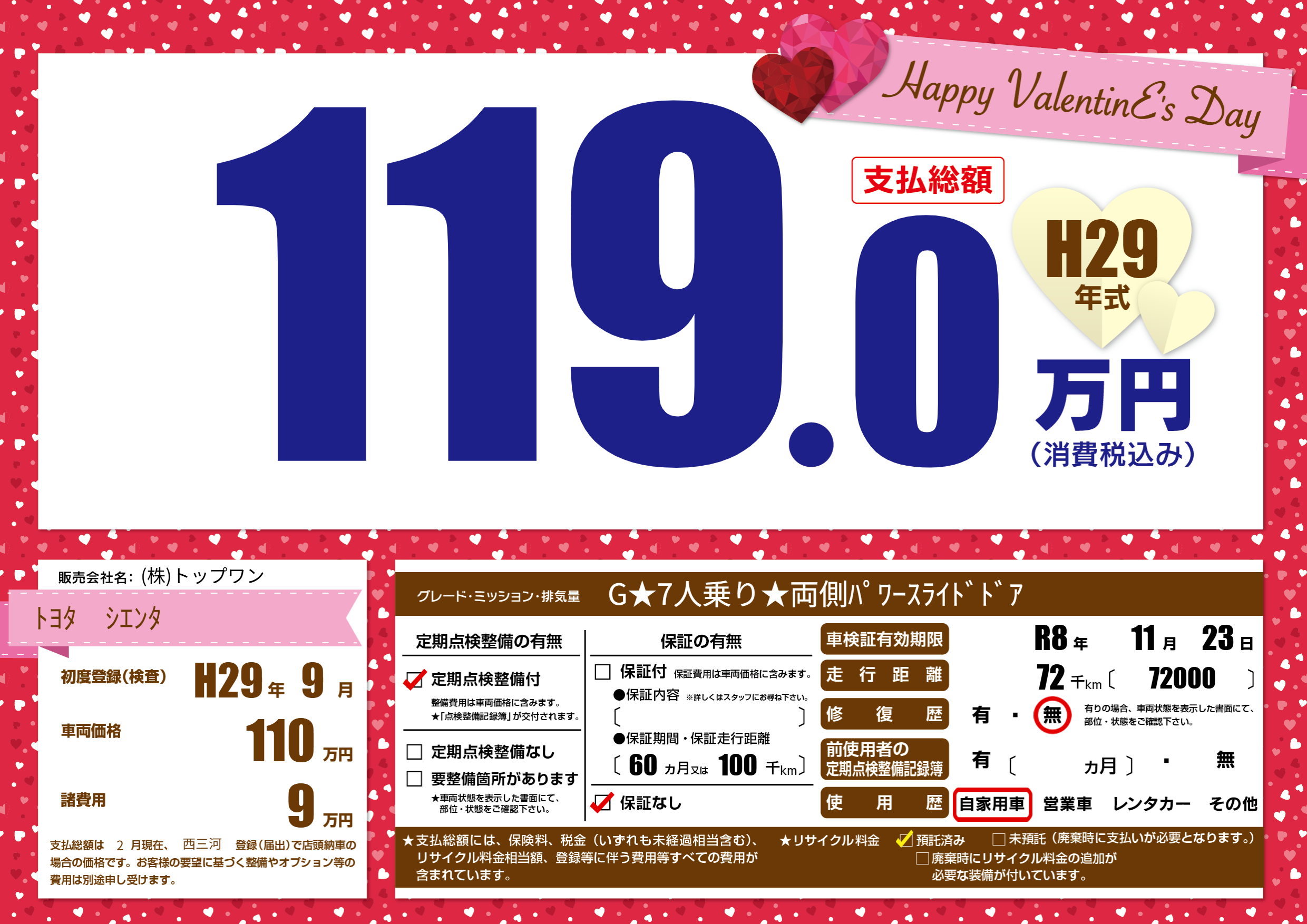| 定期点検整備 | 定期点検整備あり | ||