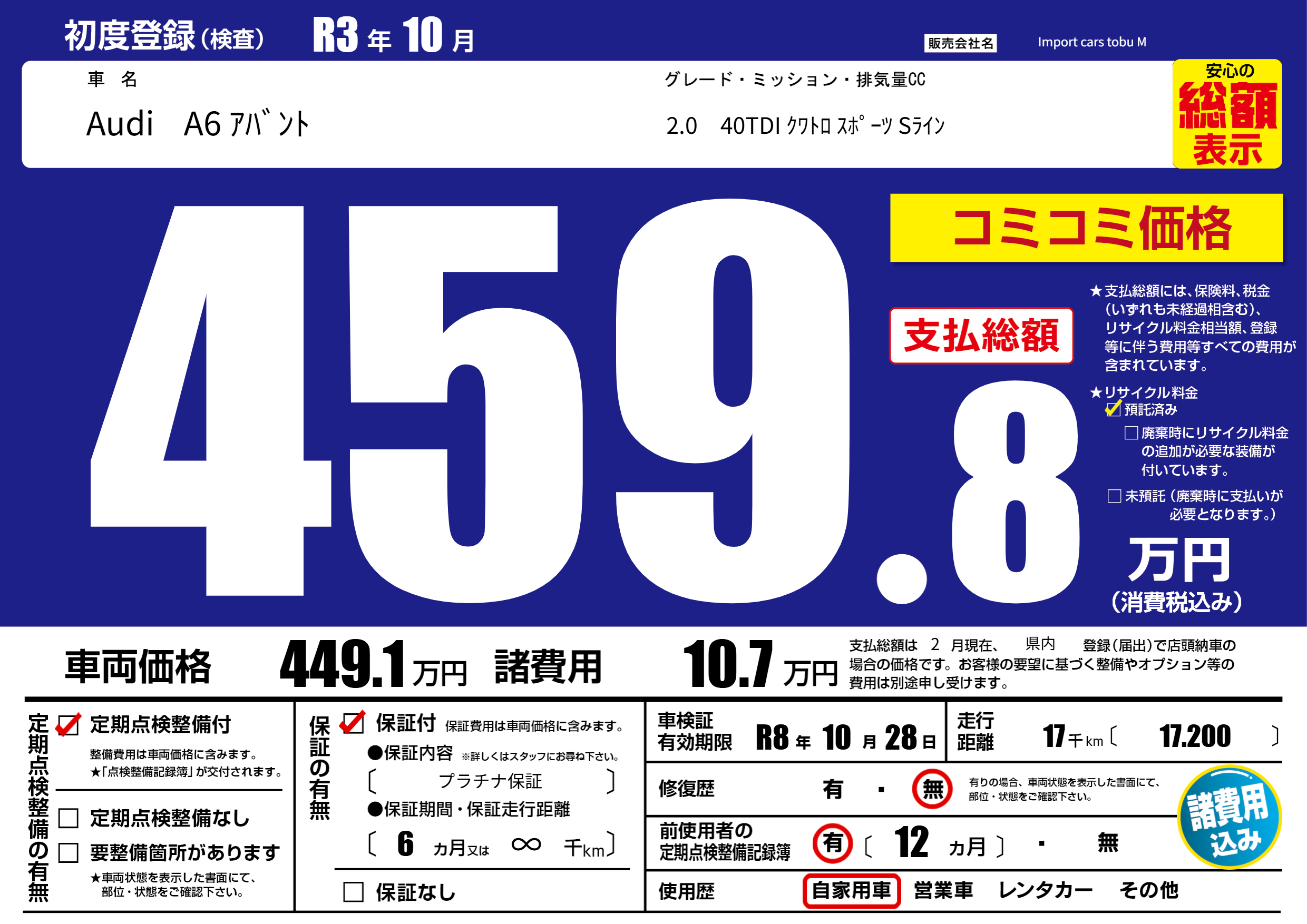 保証付き 保証内容( プラチナ保証) 6ヶ月または(∞)千kmまで |