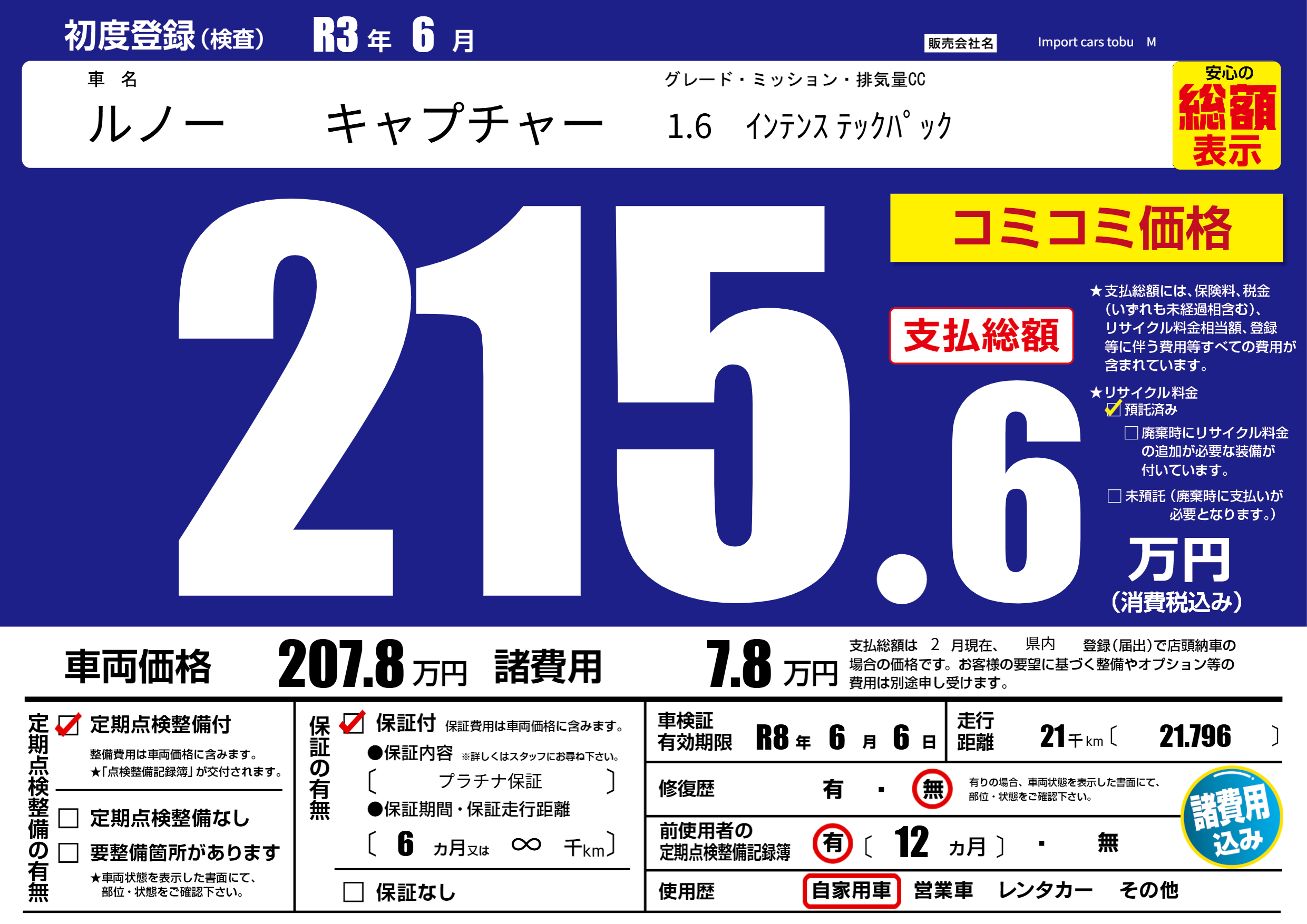 保証付き 保証内容( プラチナ保証) 6ヶ月または(∞)千kmまで |