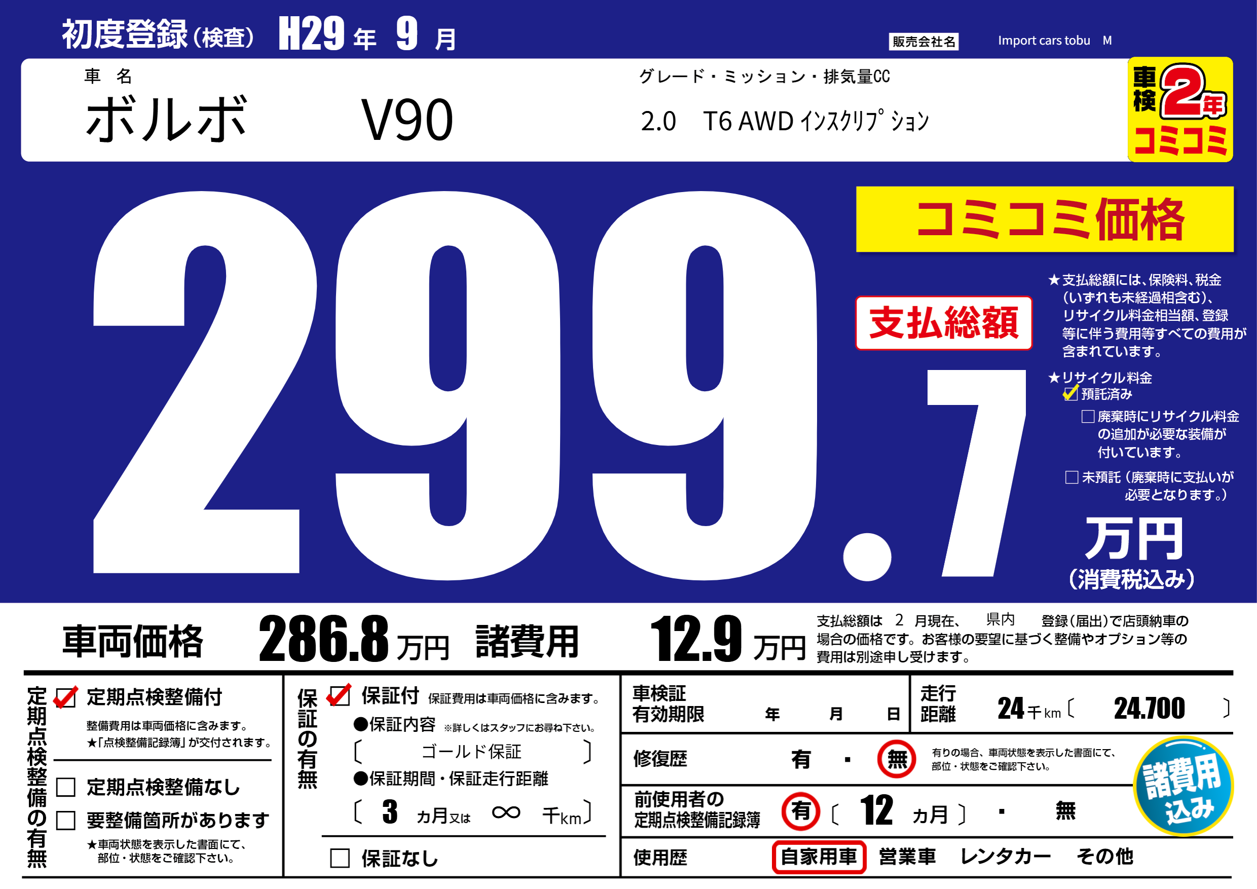 | 定期点検整備 | 定期点検整備あり | ||