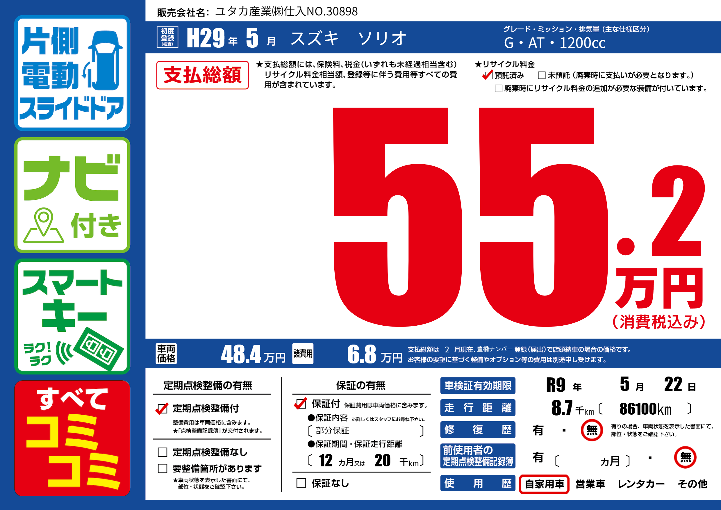なし | 車検制限 | R9年5月22月 |