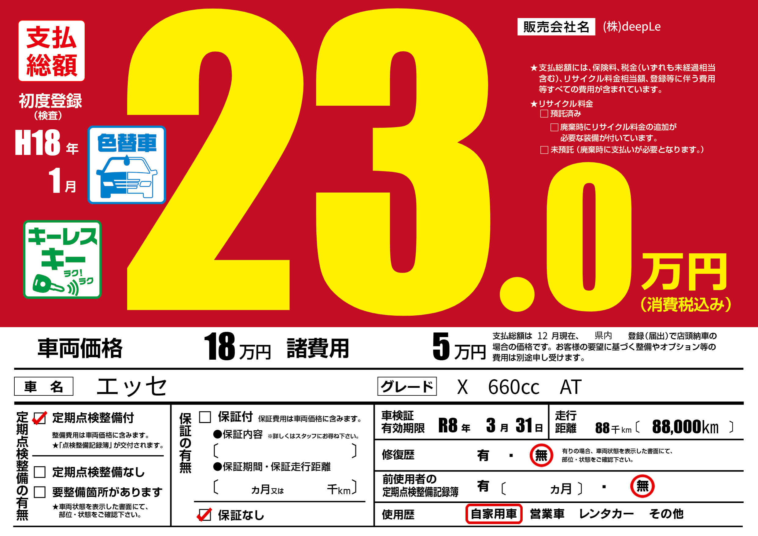 | 車検制限 | R8年 3月 31日 | ||