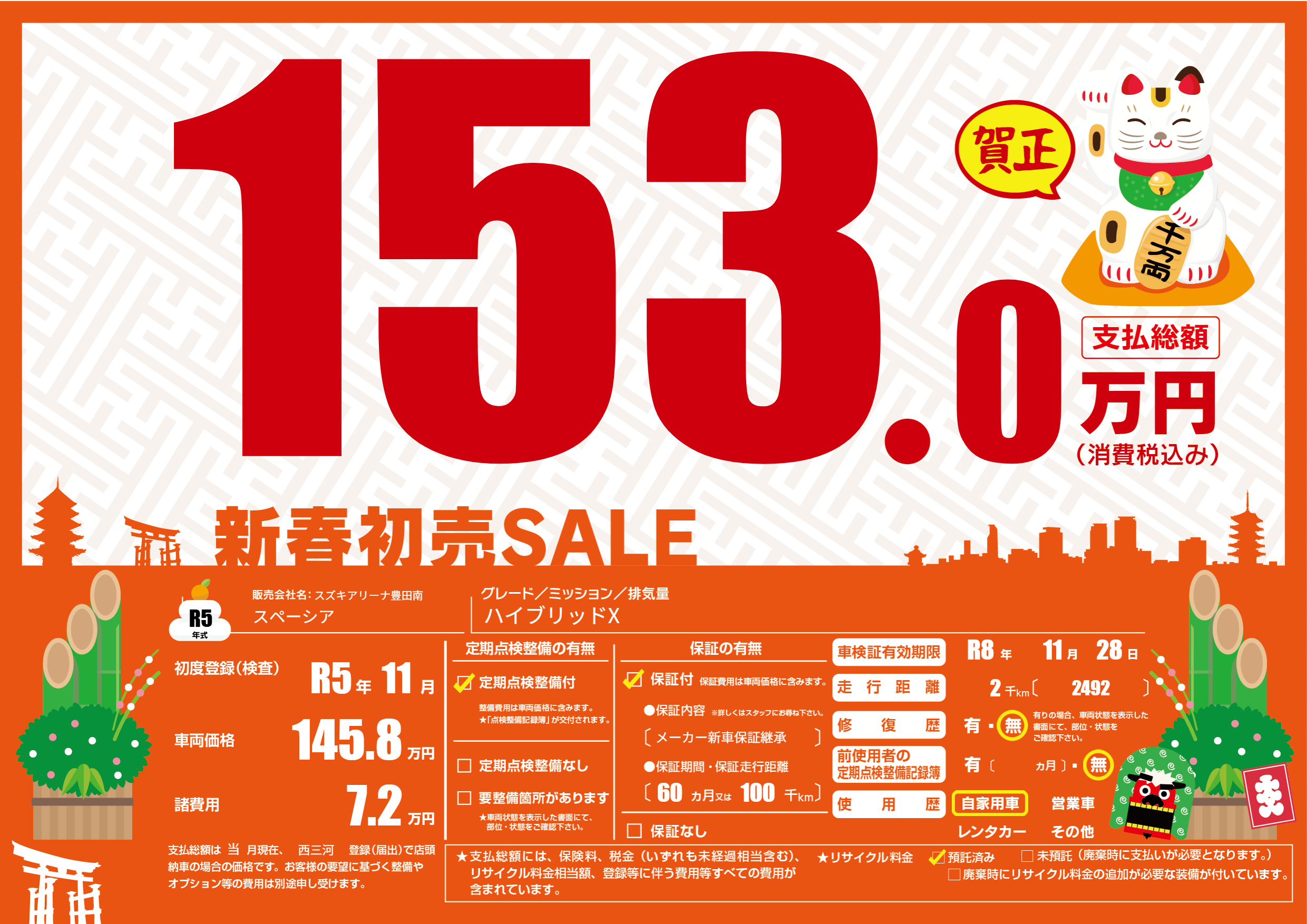 | 走行キロ | 0.2万km | 初年度登録 | R5年11月 |