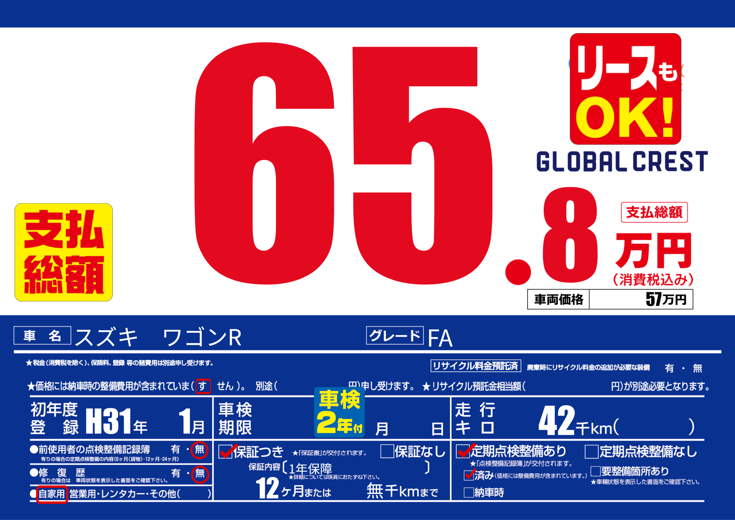 | 定期点検整備 | 定期点検整備あり 定期点検整備済み | ||