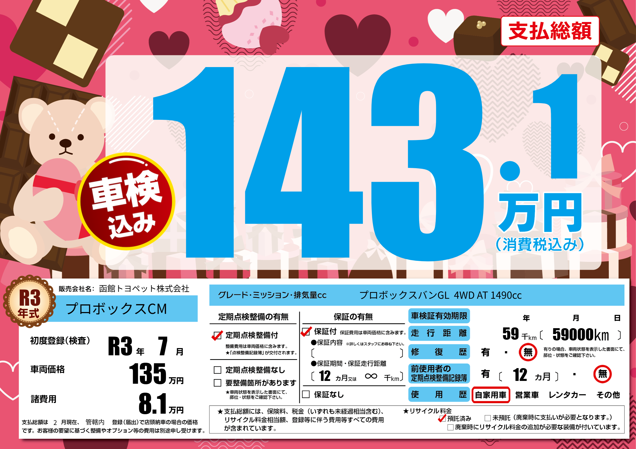 | 車名 | プロボックスCM | グレード ミッション 排気量 |