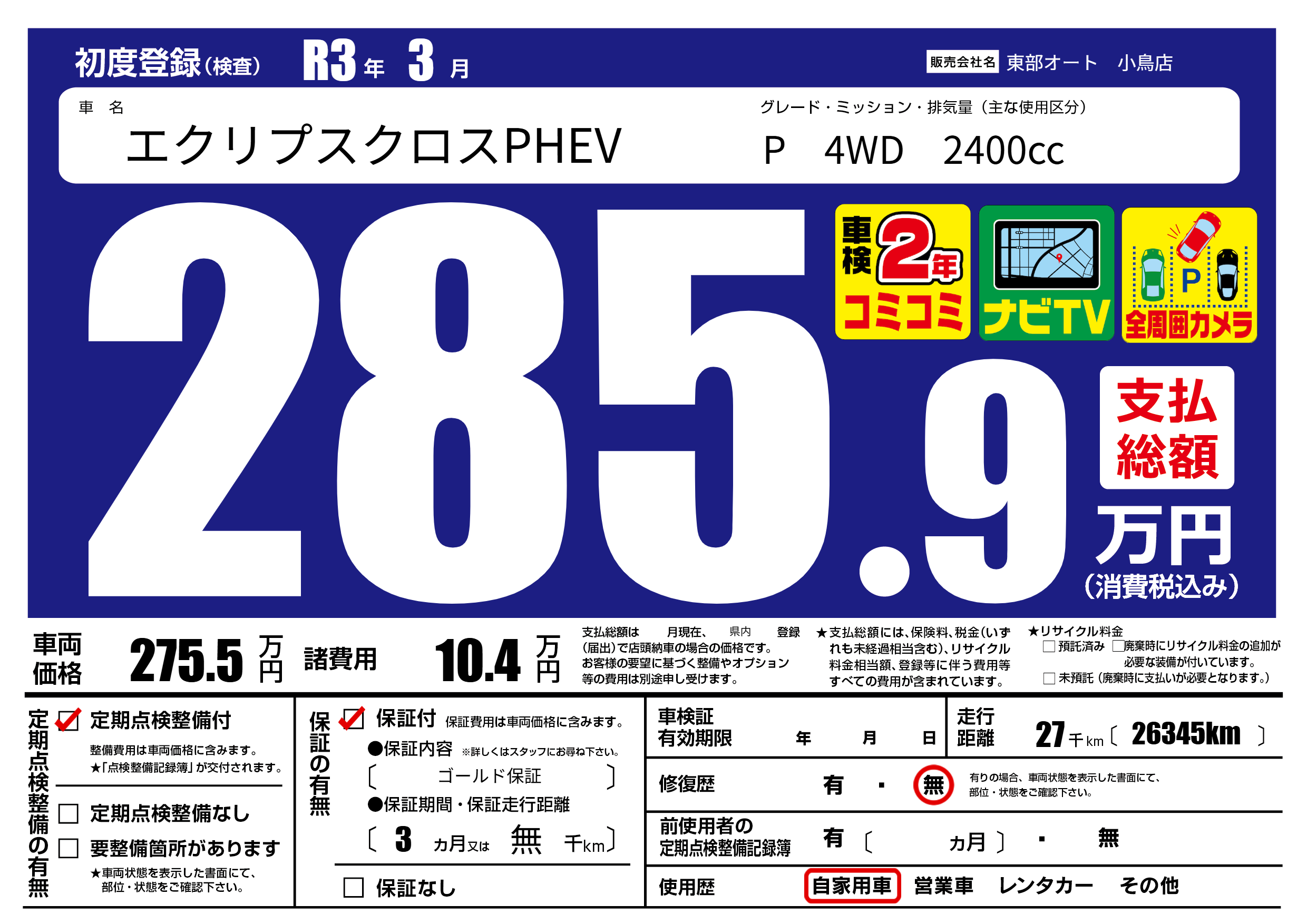 | 定期点検整備 | 定期点検整備あり | ||