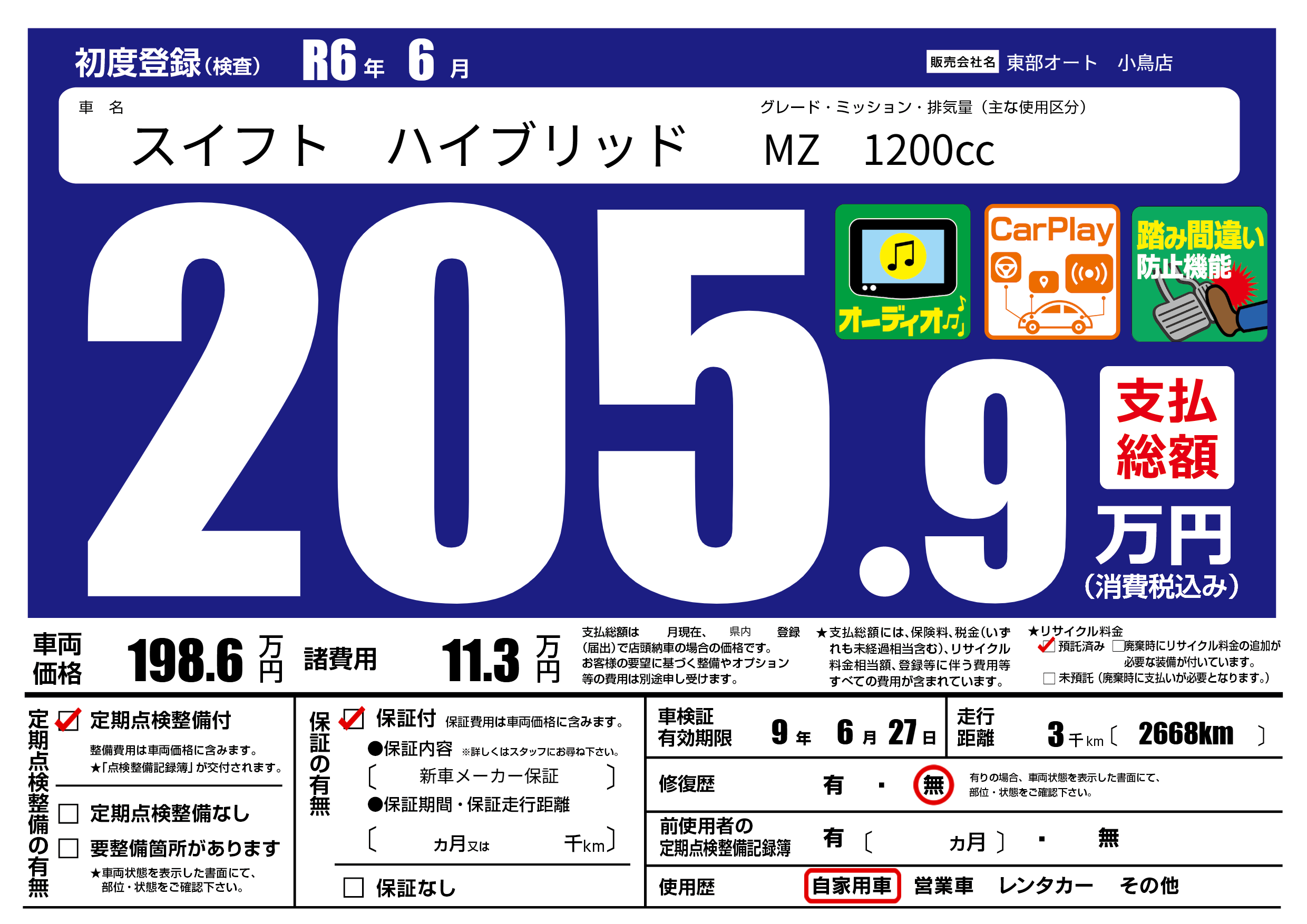 | 車検制限 | 9年 6月 27日 | ||