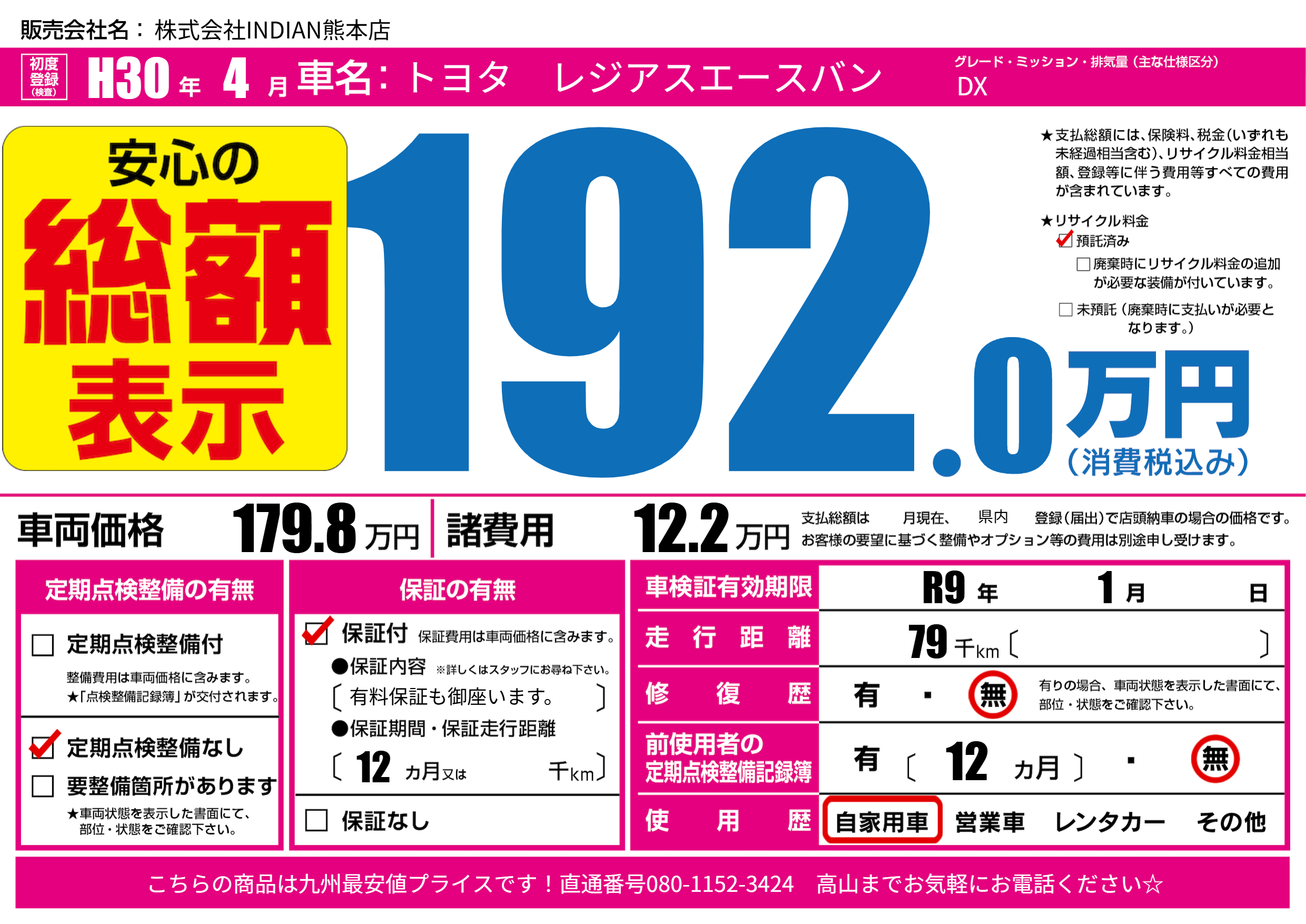 なし | 車検制限 | R9年1月---月 |