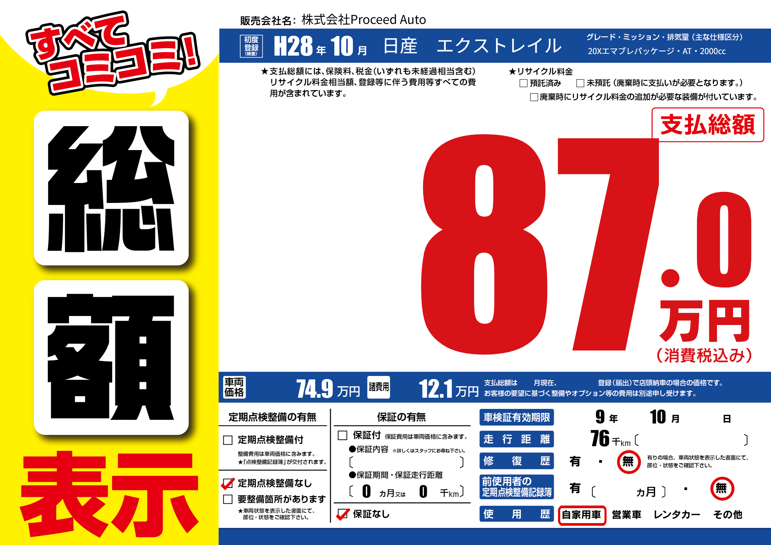 | 車名 | 日産 エクストレイル | グレード ミッション 排気量 |