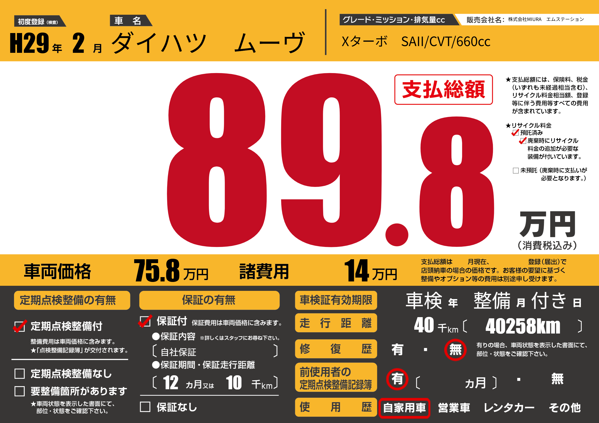 | 走行キロ | 4万km | ||