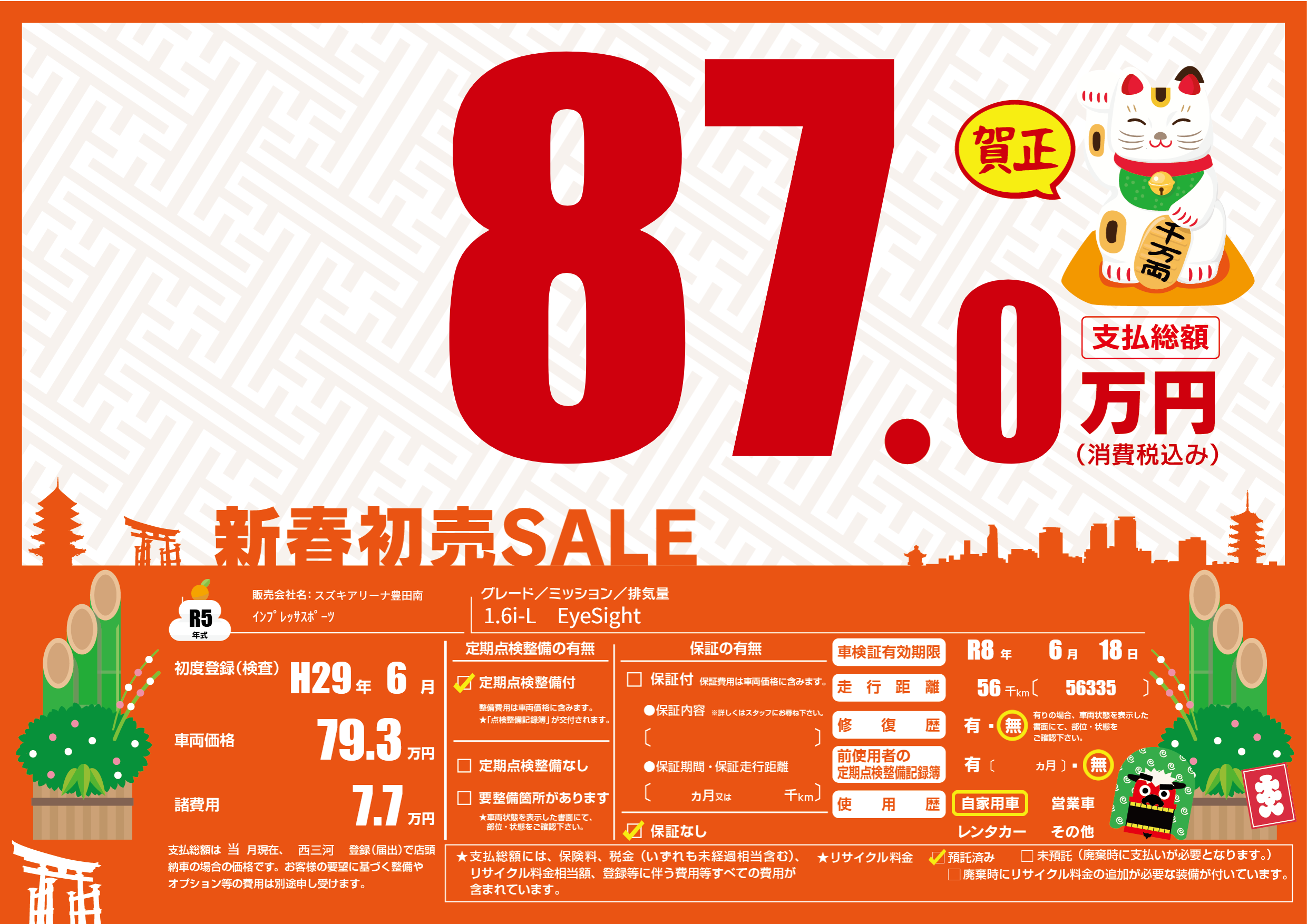 なし | 車検制限 | R8年6月18月 |
