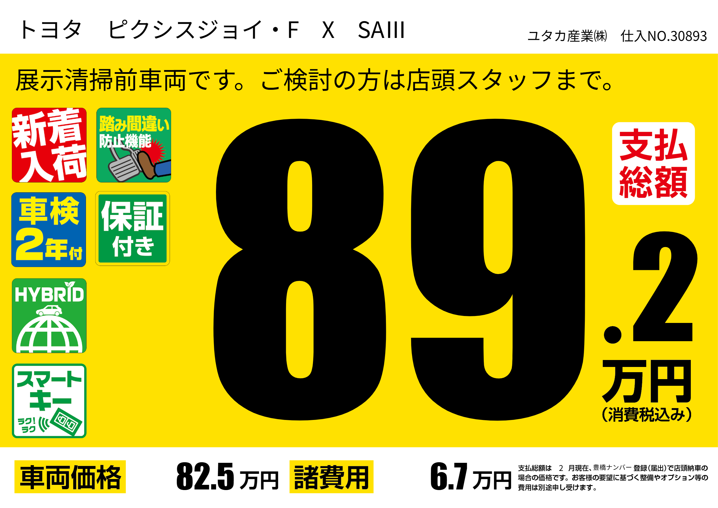| 車名 | トヨタ ピクシスジョイ・F X SAⅢ | グレード ミッション 排気量 |