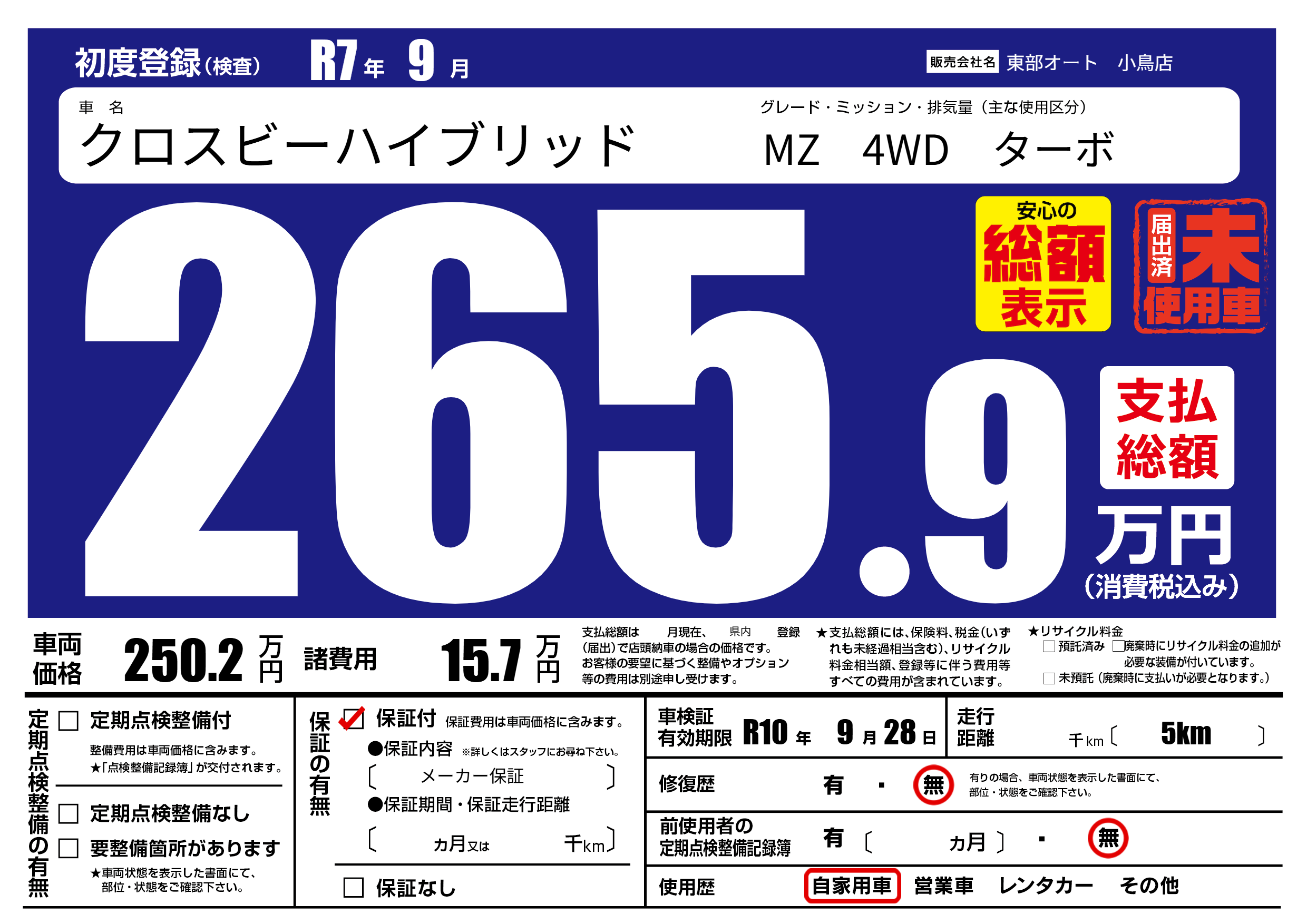 なし | 車検制限 | R10年9月28月 |