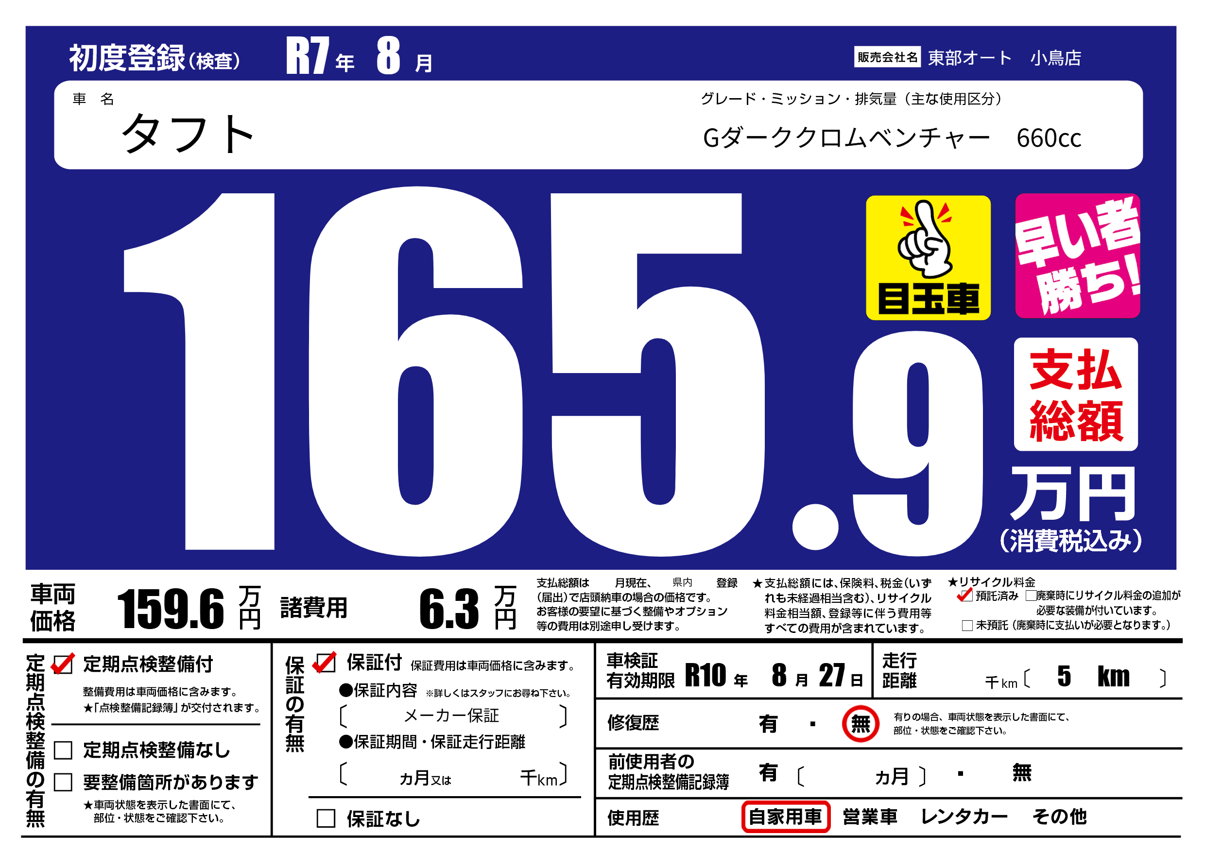なし | 車検制限 | R10年8月27月 |
