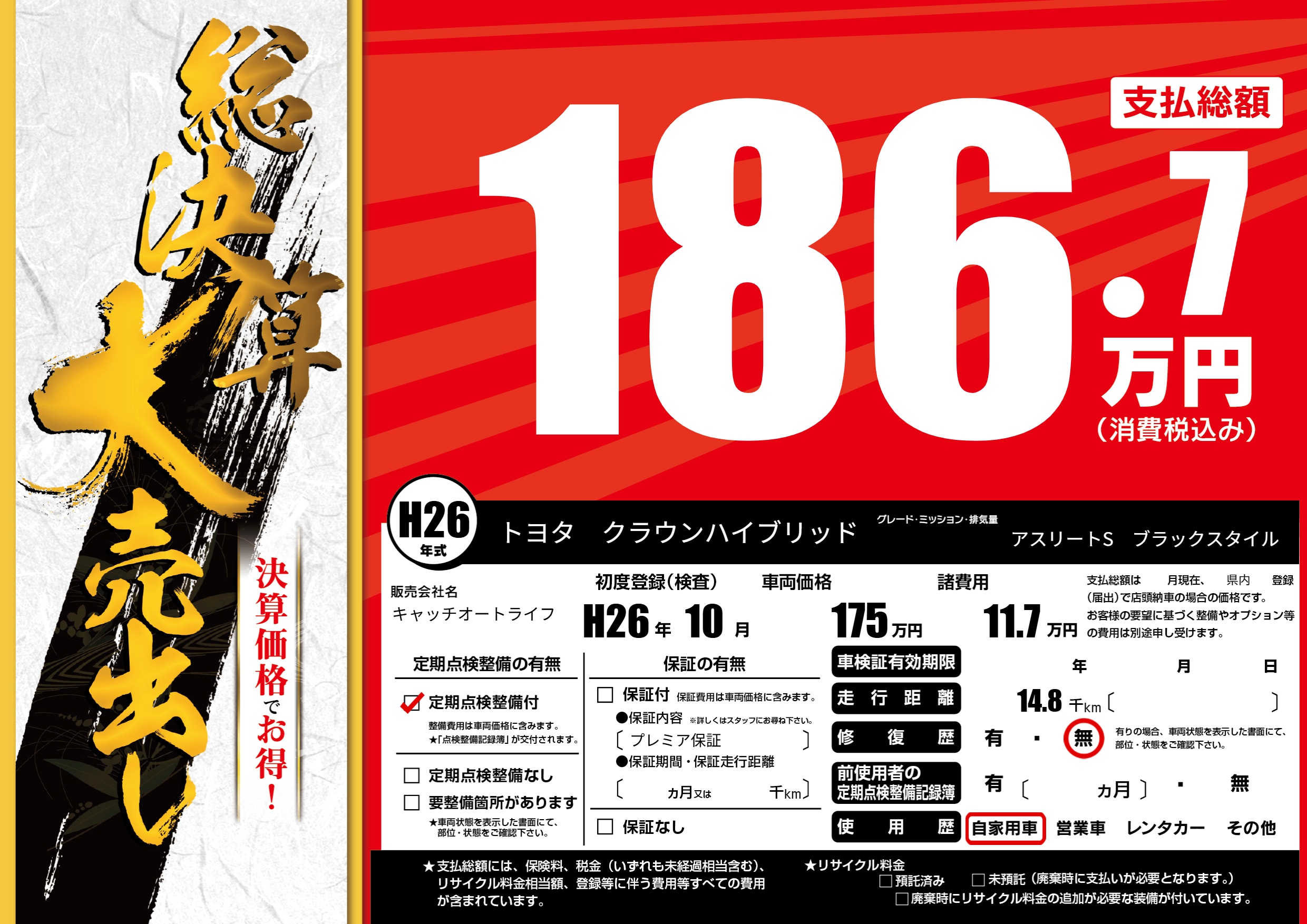 | 車名 | トヨタ クラウンハイブリッド | グレード ミッション 排気量 |