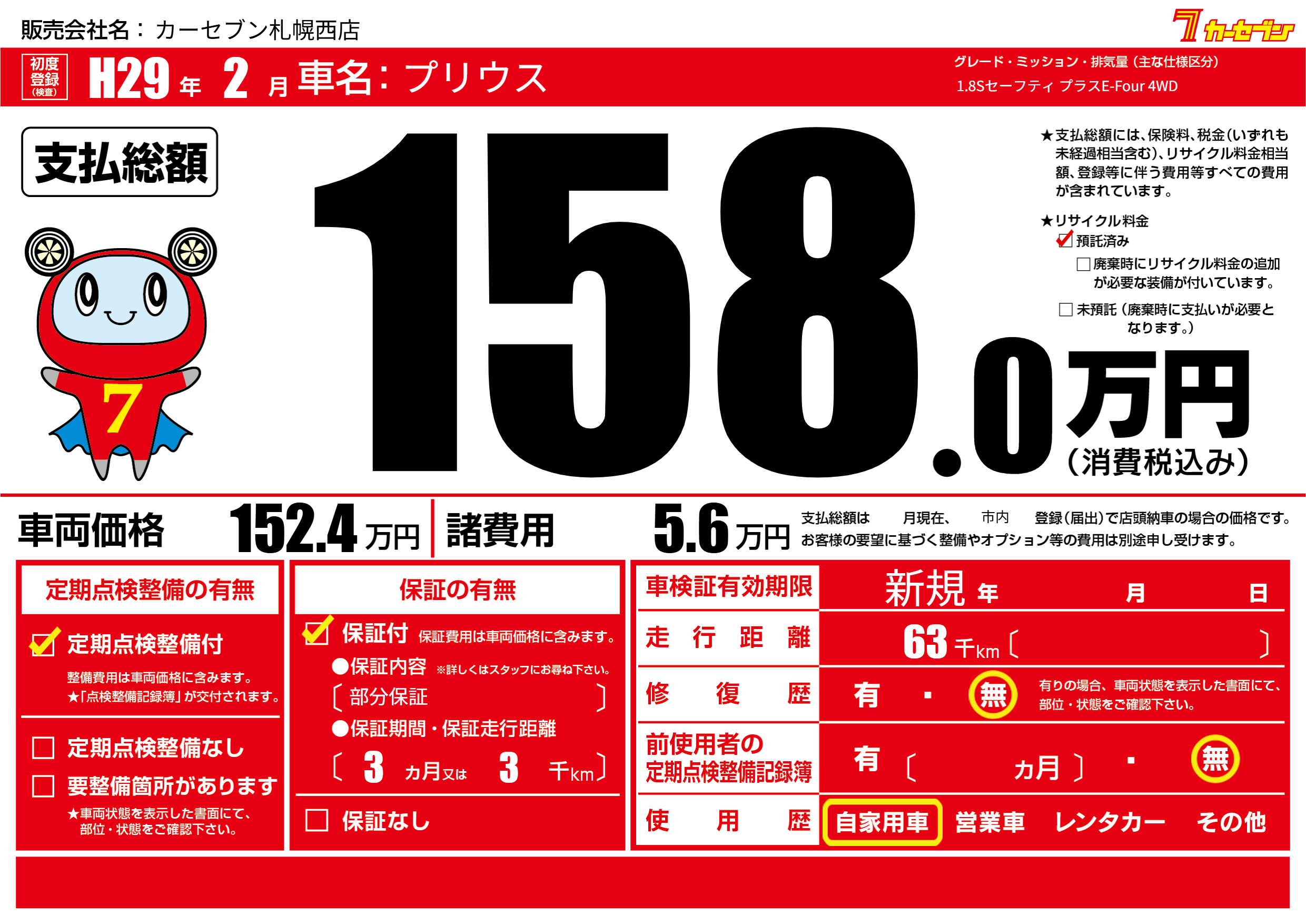 | 定期点検整備 | 定期点検整備あり | ||